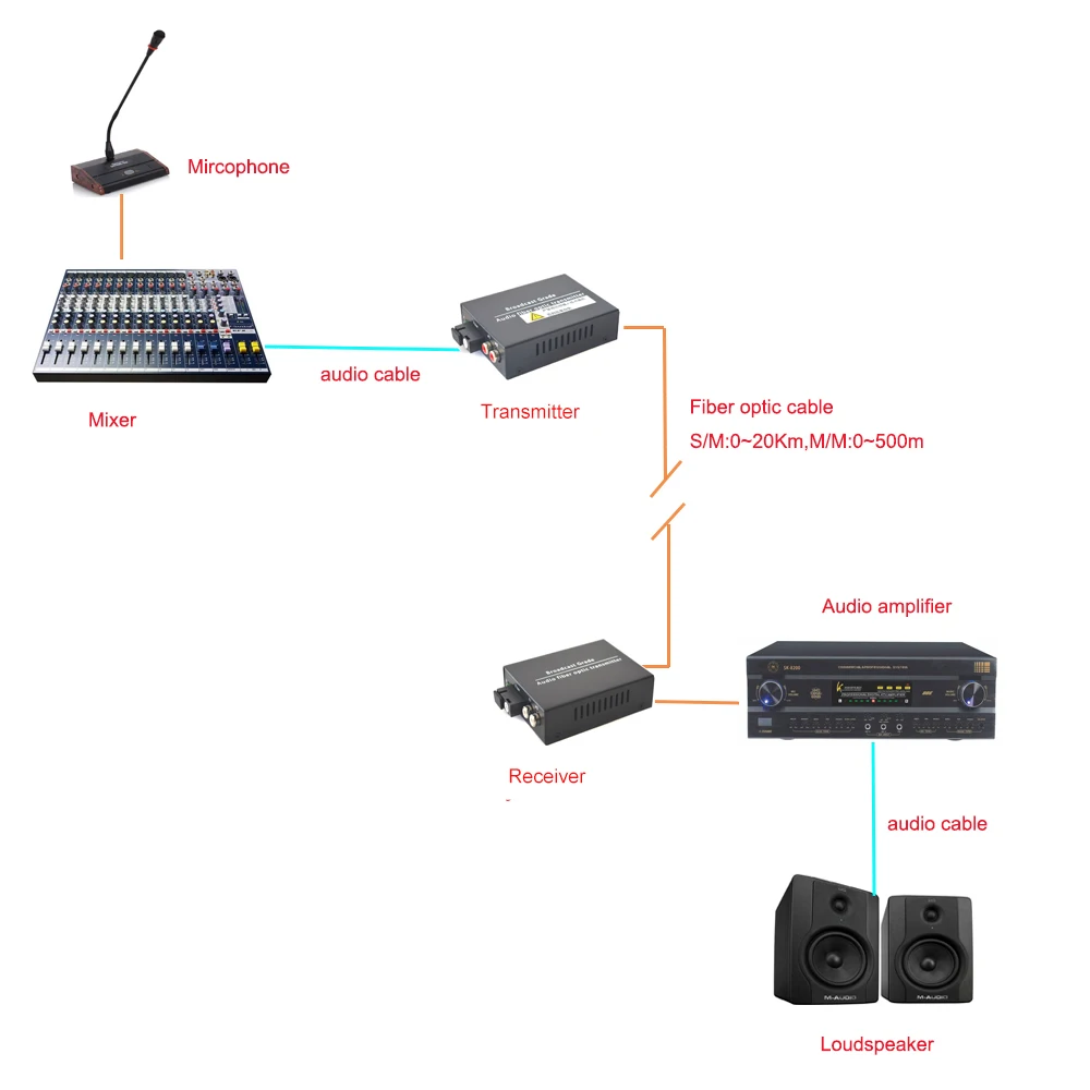 2 канала аудио над волоконно оптические медиа конвертеры-одномодовый волокна до 20Km Mul...