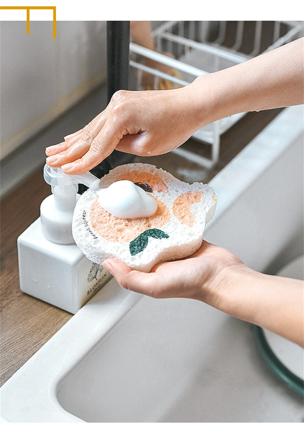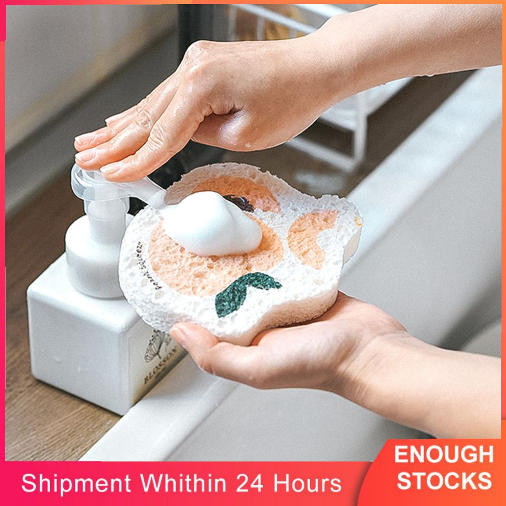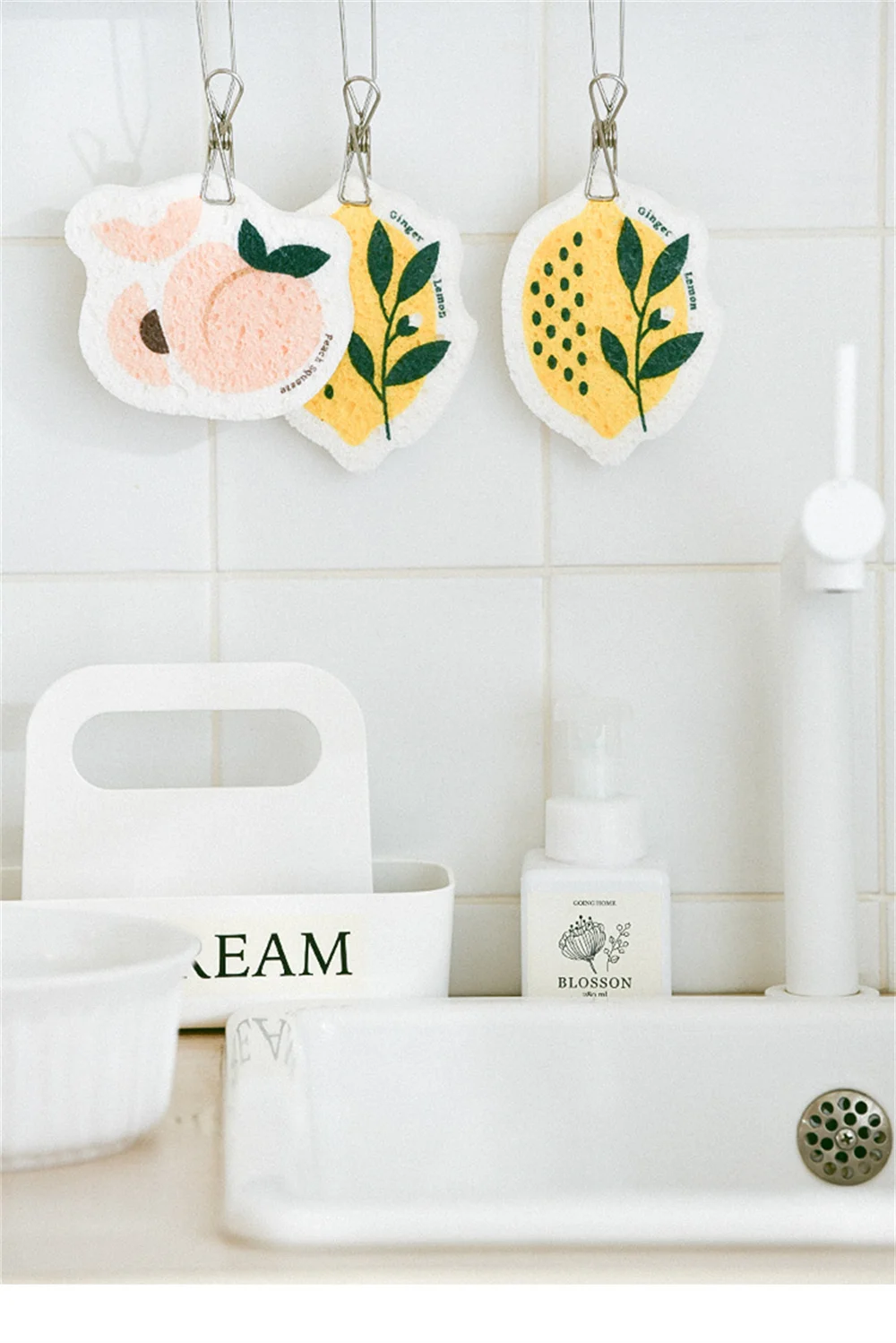 1 шт., хлопковая Губка из древесной массы, не царапается, кухонные губки для мытья посуды, многоразовые кухонные губки с Скруббером, многоцелевые губки для мытья посуды