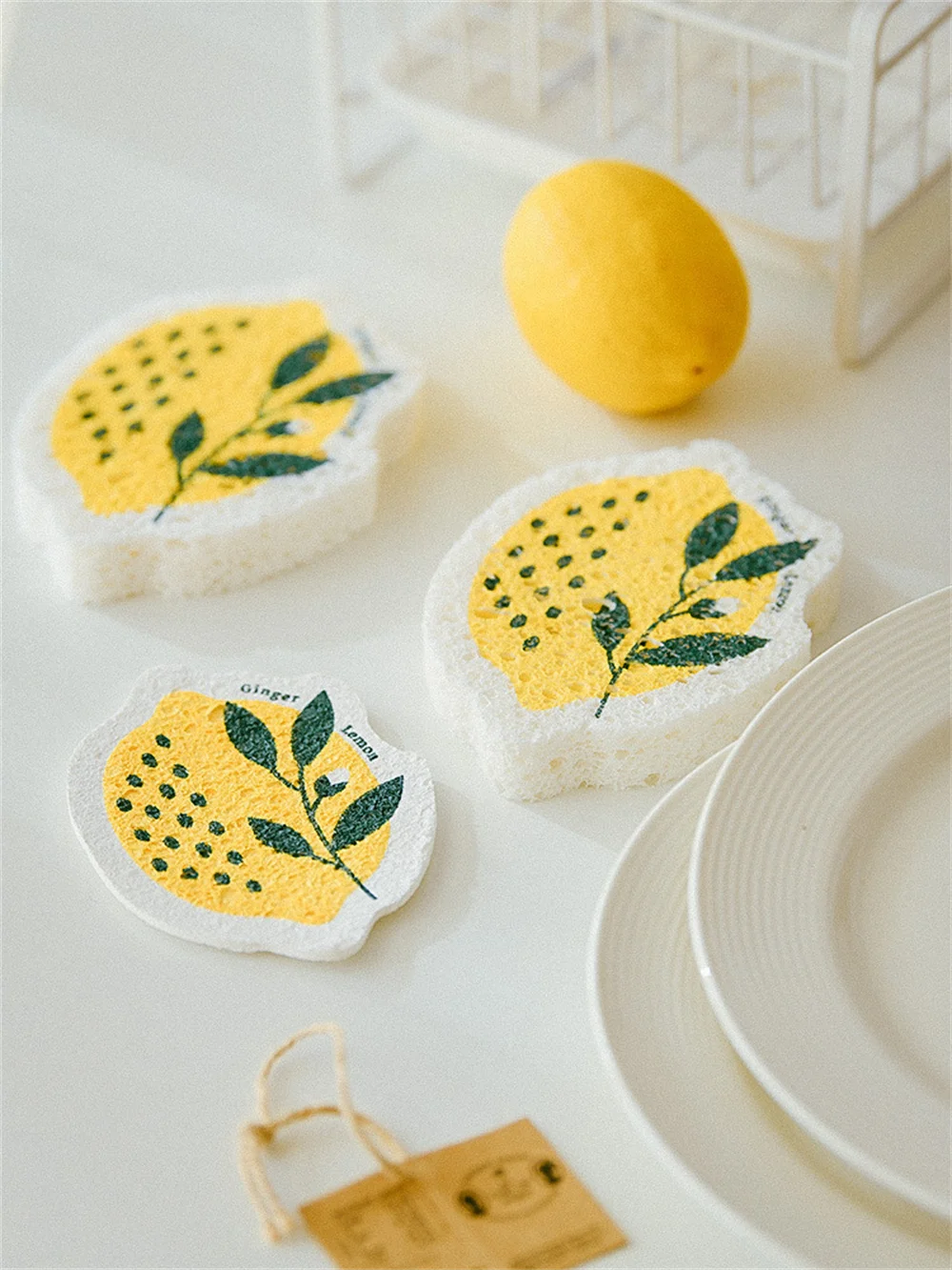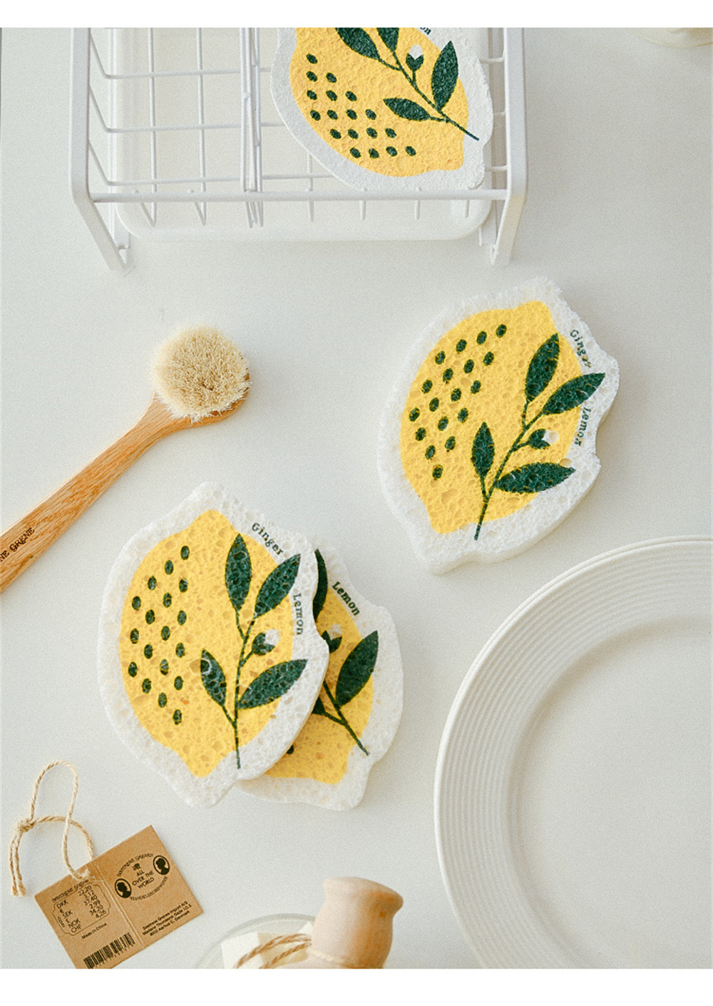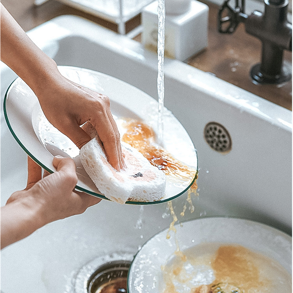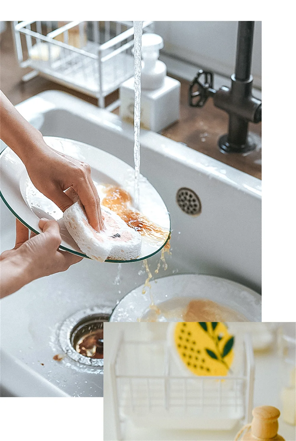 1 шт., хлопковая Губка из древесной массы, не царапается, кухонные губки для мытья посуды, многоразовые кухонные губки с Скруббером, многоцелевые губки для мытья посуды