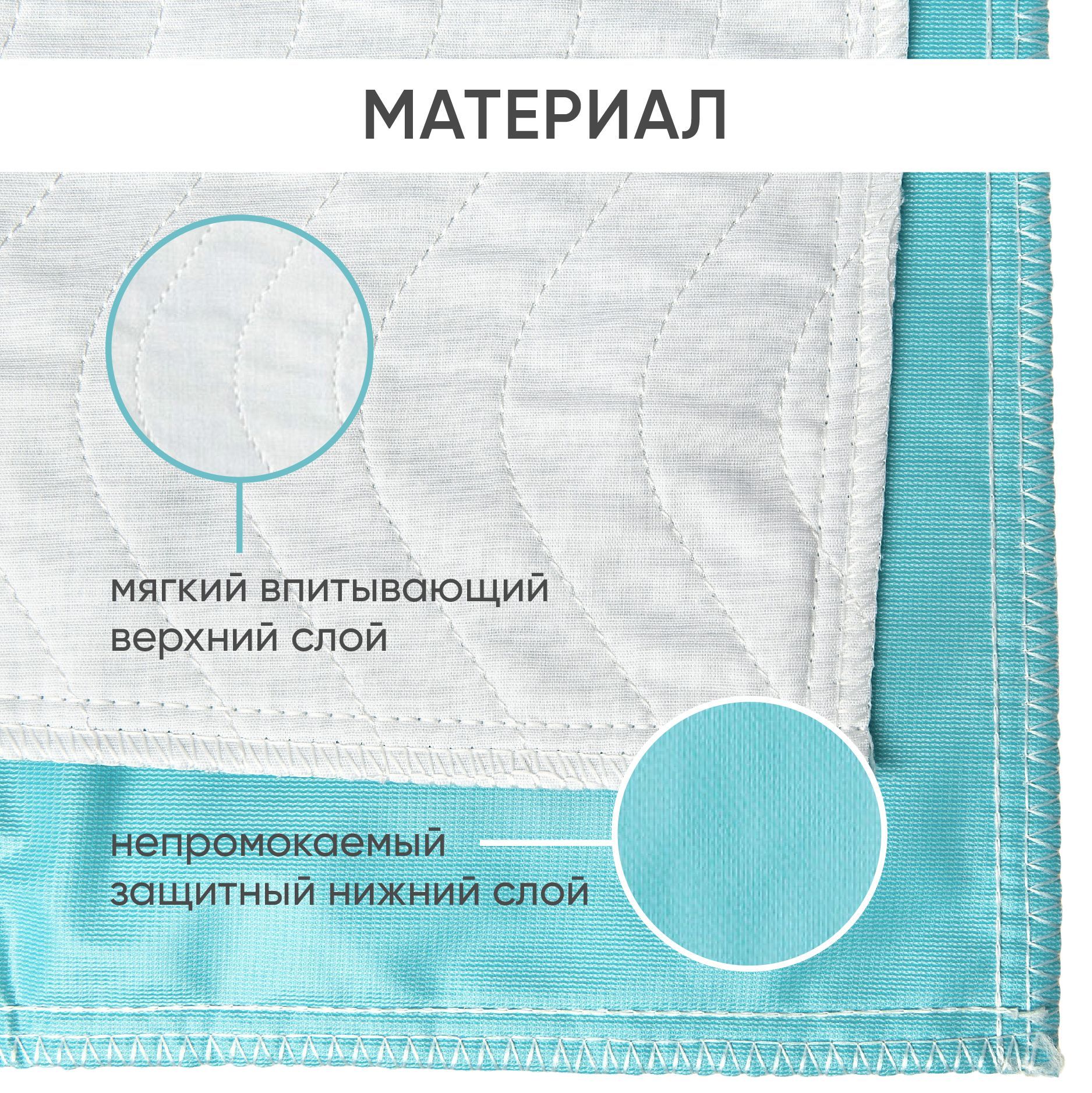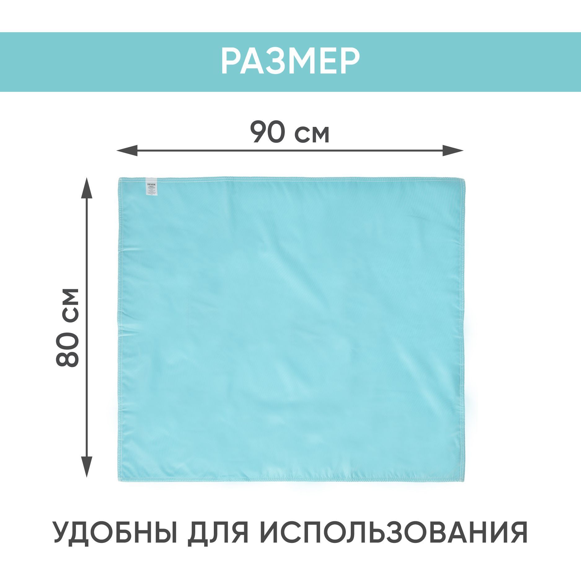 Многоразовая впитывающая пеленка BESIDE волны, 80x90 см, хлопок полиэстер, ПВХ, бело-голубая, клеенка подкладная водонепроницаемая непромокаемая для детей, новорожденных, взрослых, животных