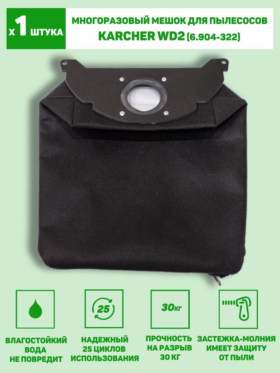 Многоразовые мешки для пылесоса KARCHER 6.904-322 WD2 , MV2, WD 2.200 (комплект 1 шт.) Мешок - пылесборник