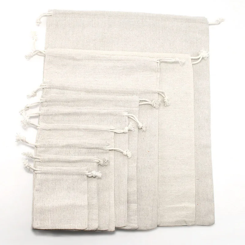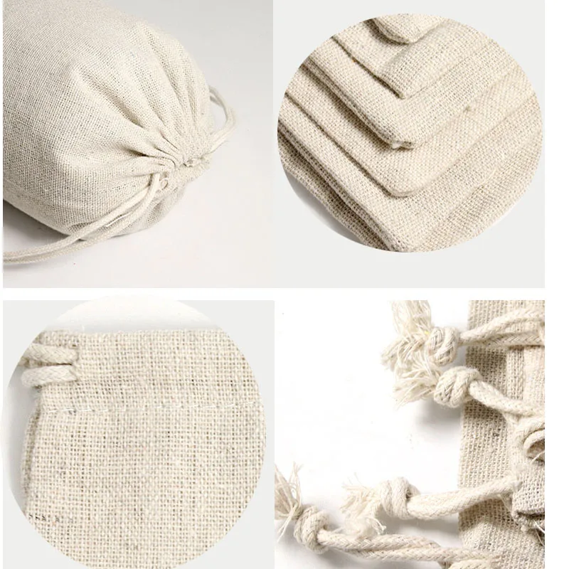 Многоразовые подарочные пакеты из хлопка и льна на шнурке, свадебные рождественские мешки для конфет разных размеров, льняные пакеты для хранения шармов, упаковки ювелирных изделий
