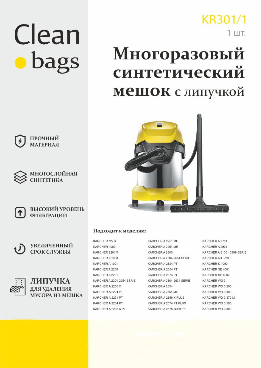 Многоразовый мешок для пылесоса Karcher серии WD3, MV 3, SE, A / Керхер wd3, вд3