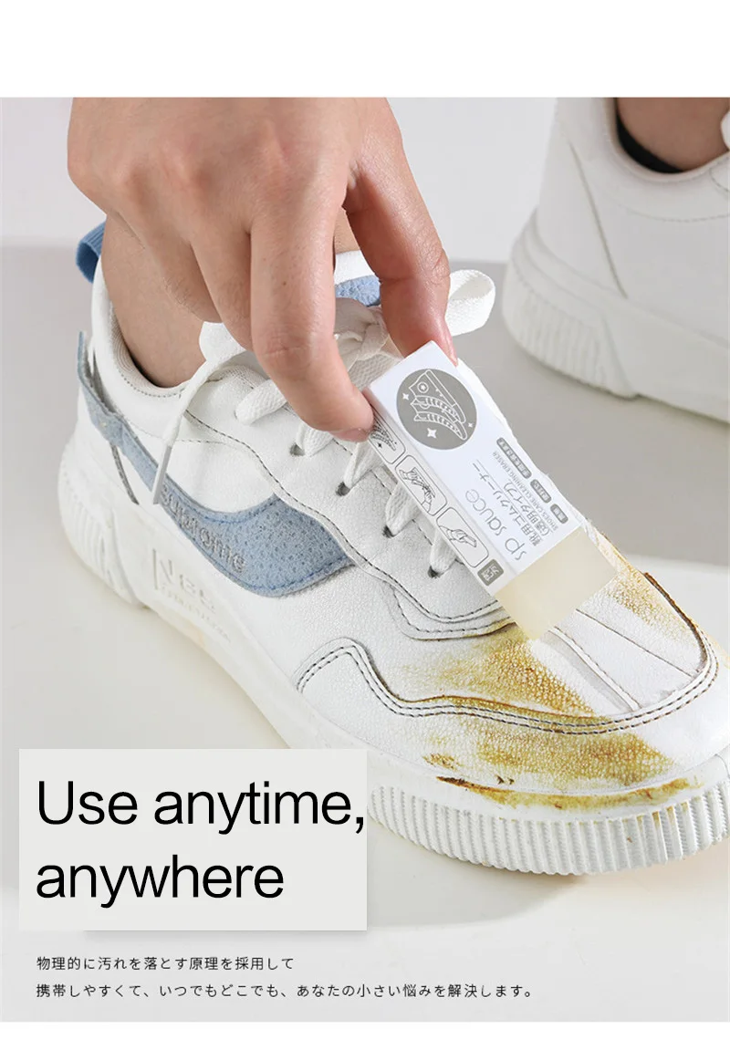 -Примечание: Этот ластик не может превратить старую обувь в новую обувь! Также невозможно восстановить обувь, которая уже произвела химические реакции, такие как пожелтение обуви или проникновение масла в материал обуви.