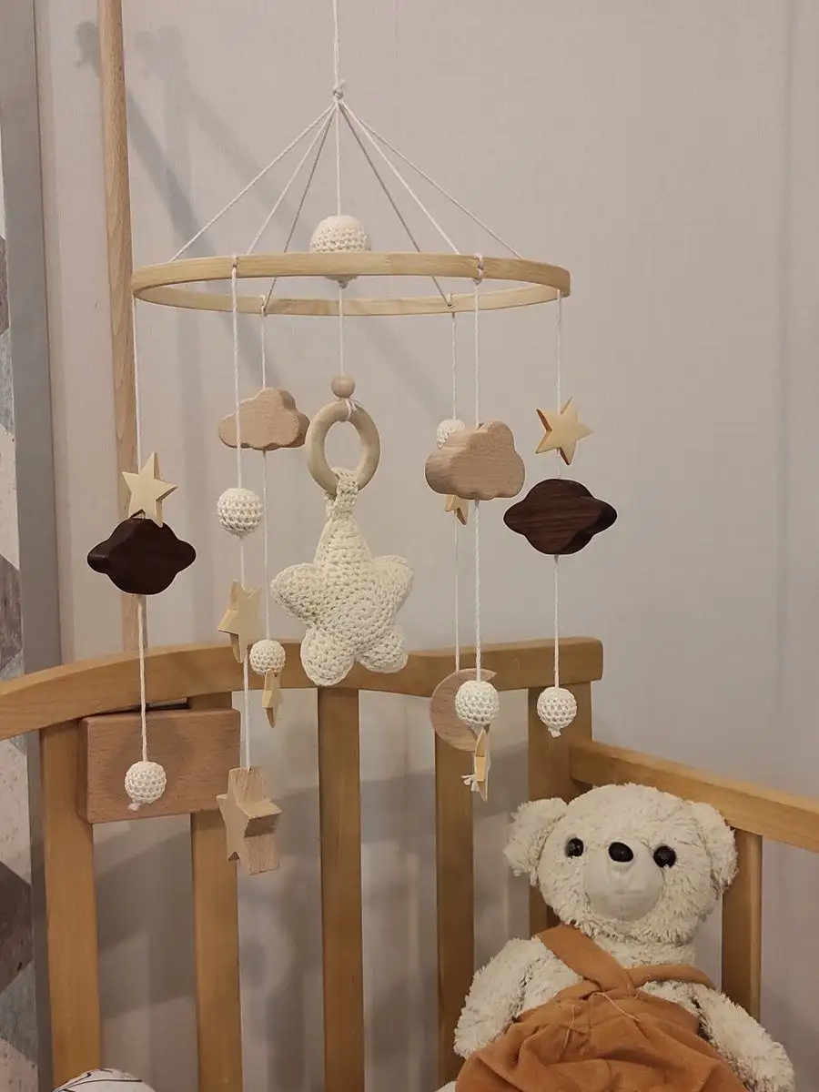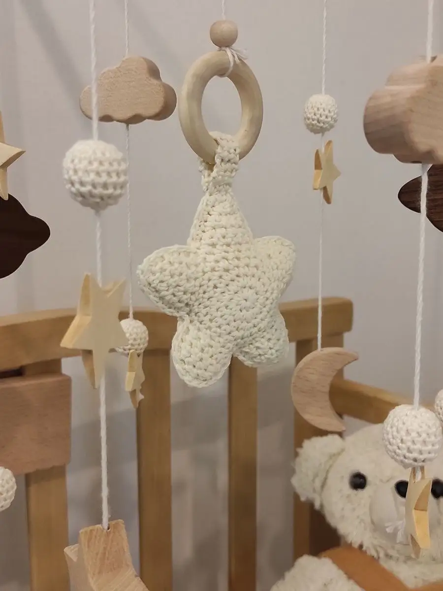 Артикул 164271752 Материал изделия дерево; хлопок; мобиль в кроватку ручной работы