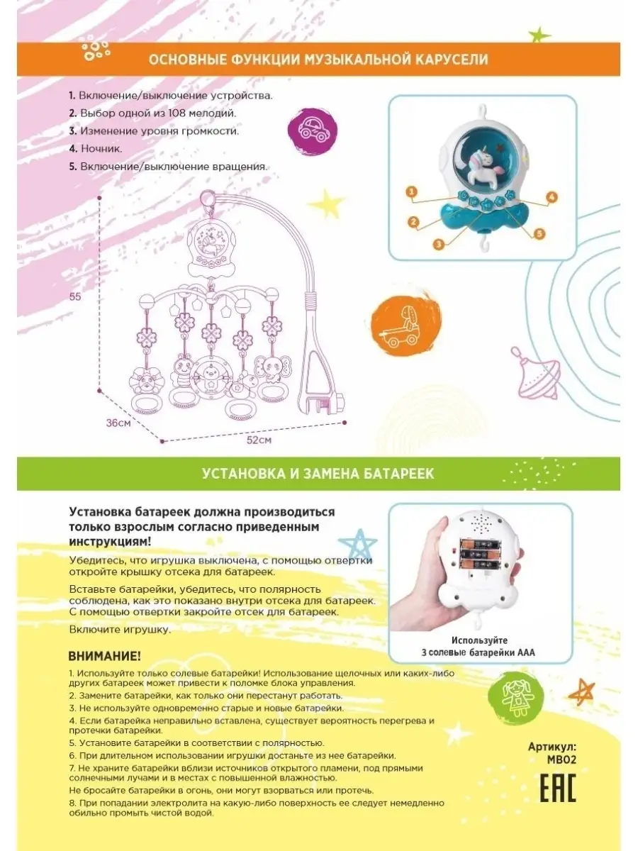 Особенности мобиля музыкальная карусель; ночник. проектор; Игрушка на кроватку