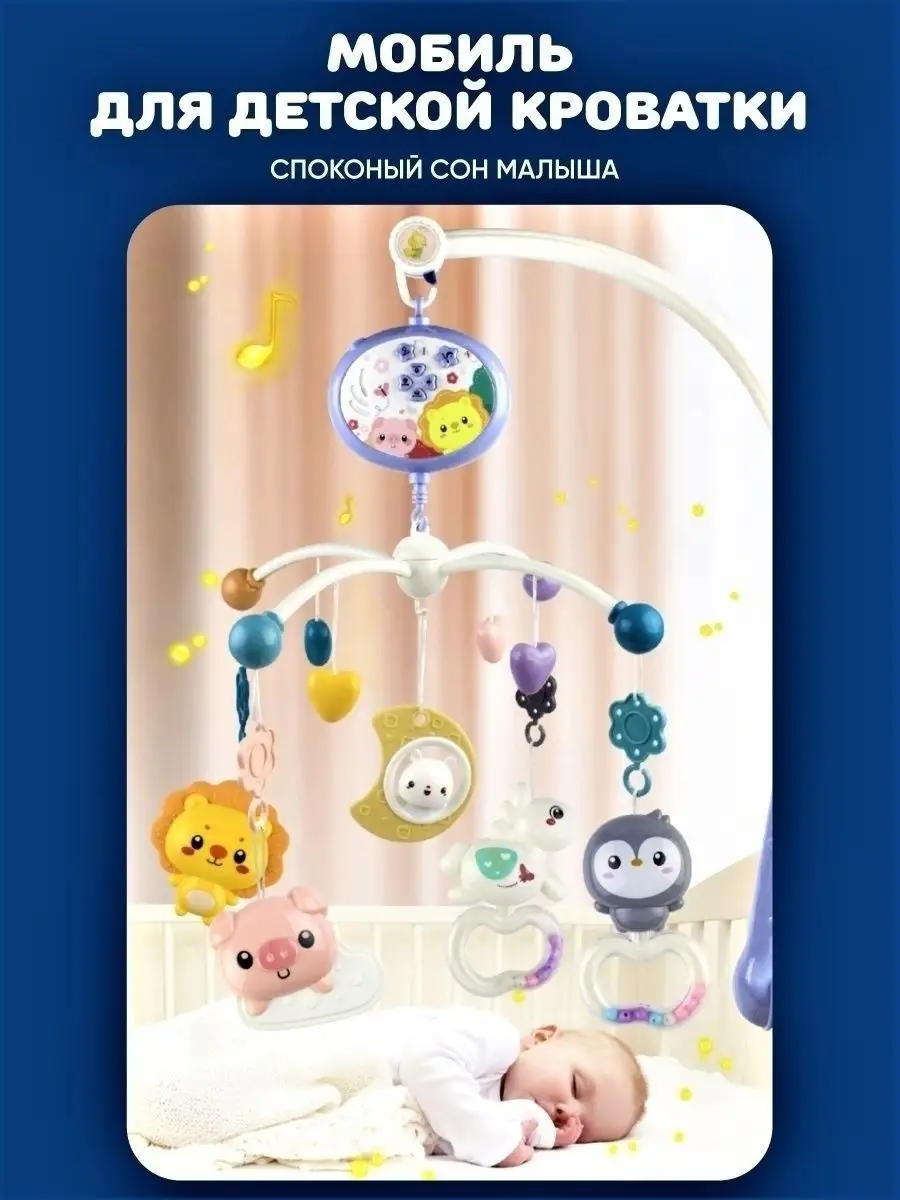 Мобиль детский, в кроватку, музыкальный, для новорожденных