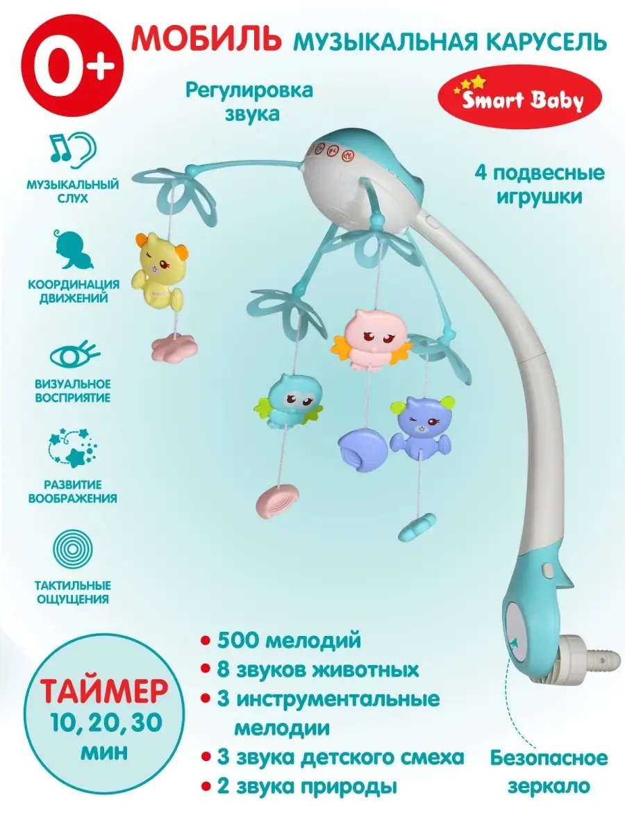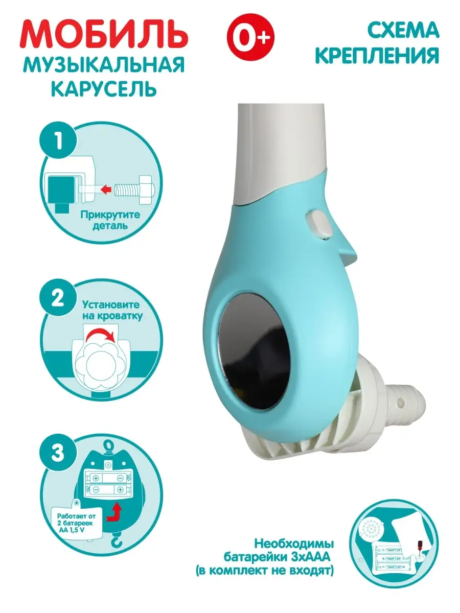 Мобиль музыкальная карусель на батарейках с пультом