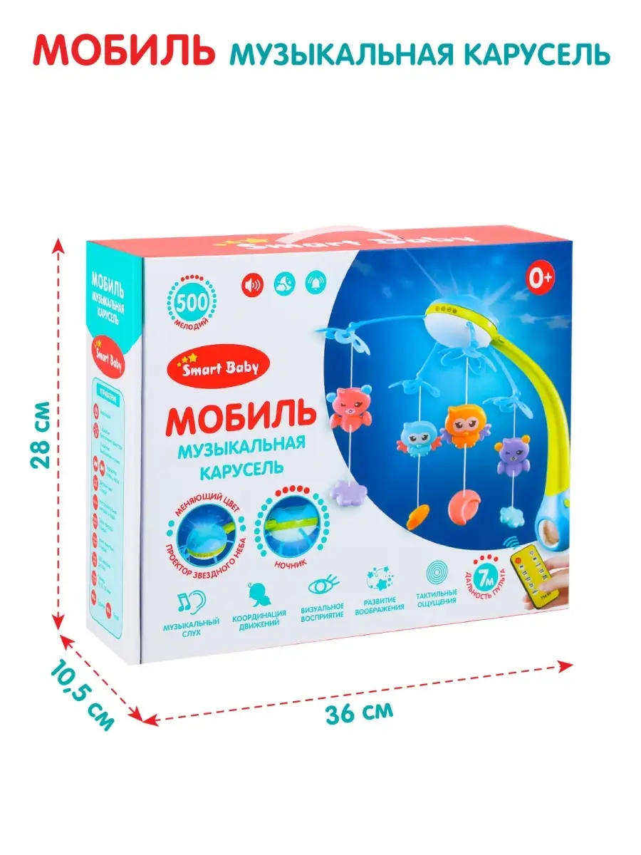 Мобиль музыкальная карусель на батарейках с пультом