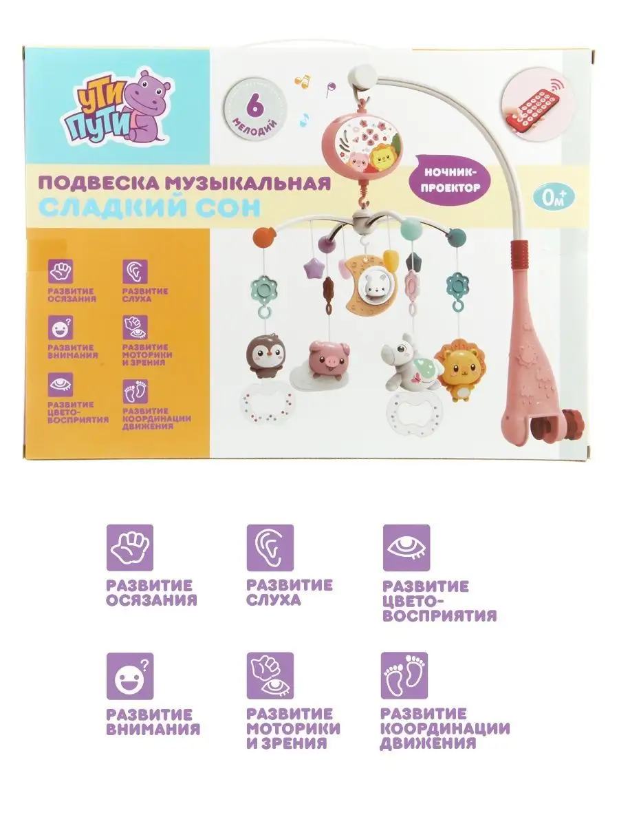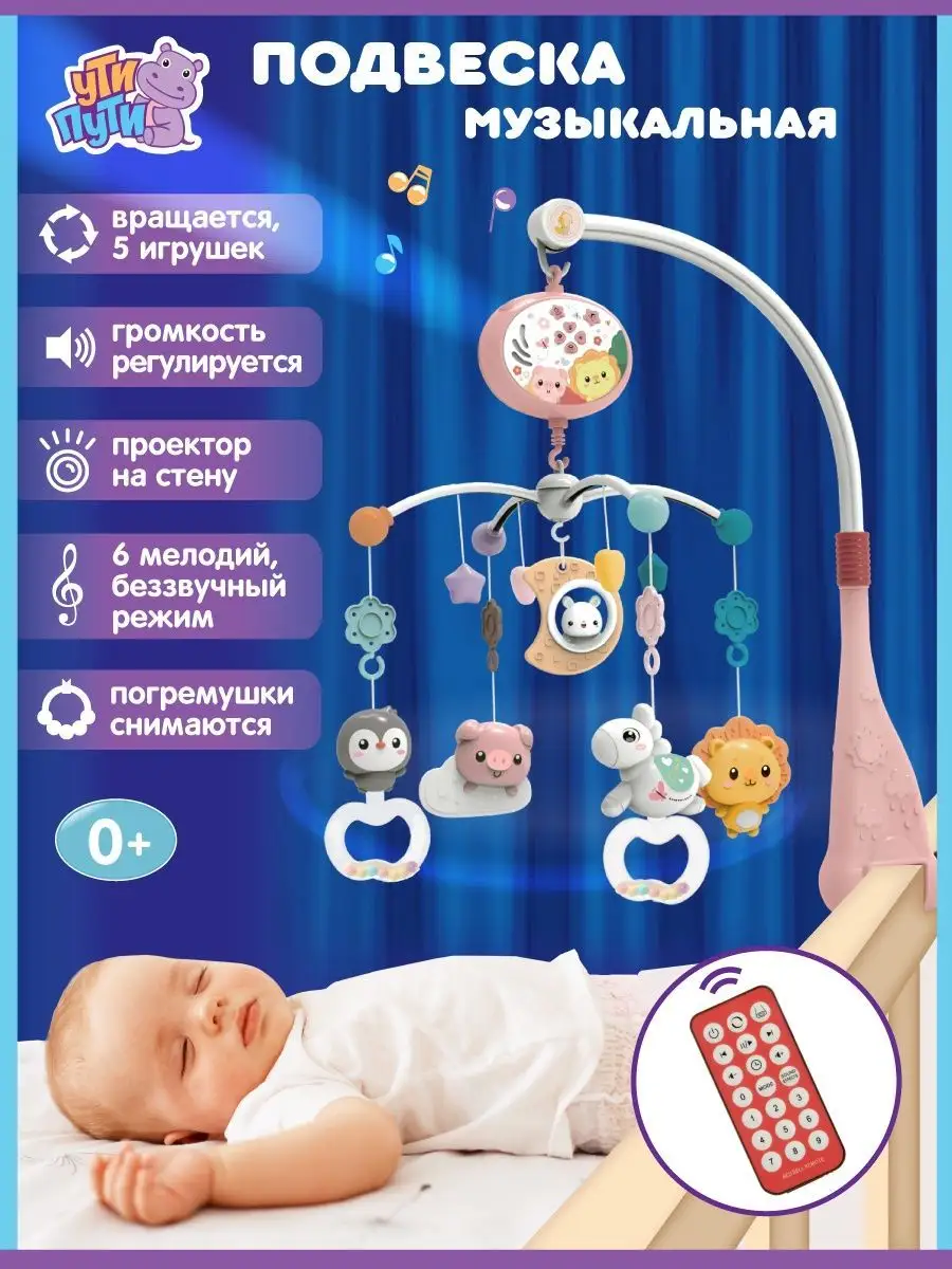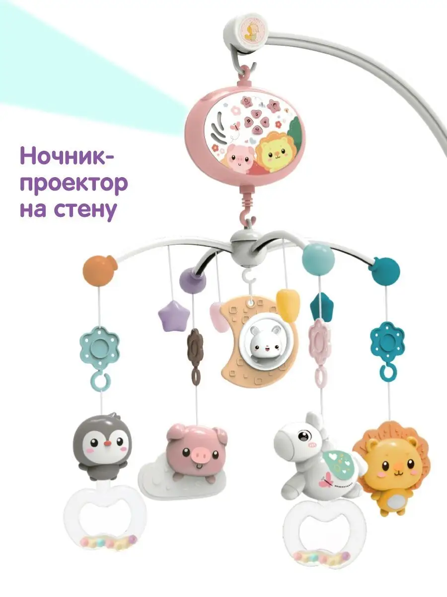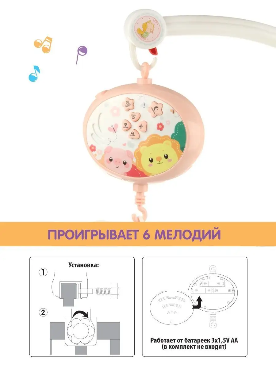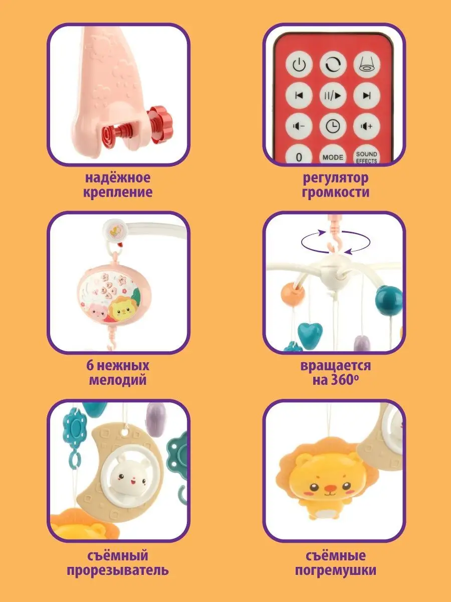 Особенности мобиля вращение игрушек; регулировка громкости; винтовое крепление