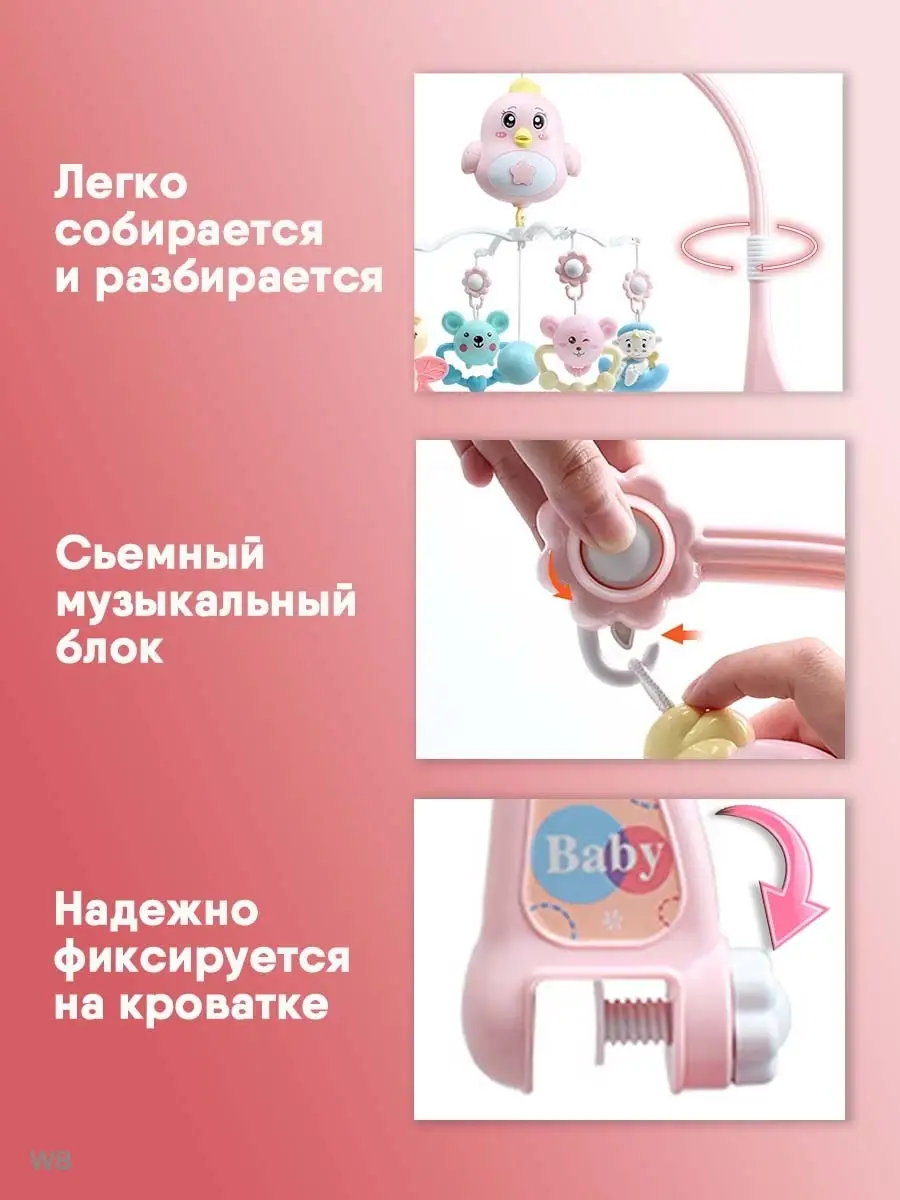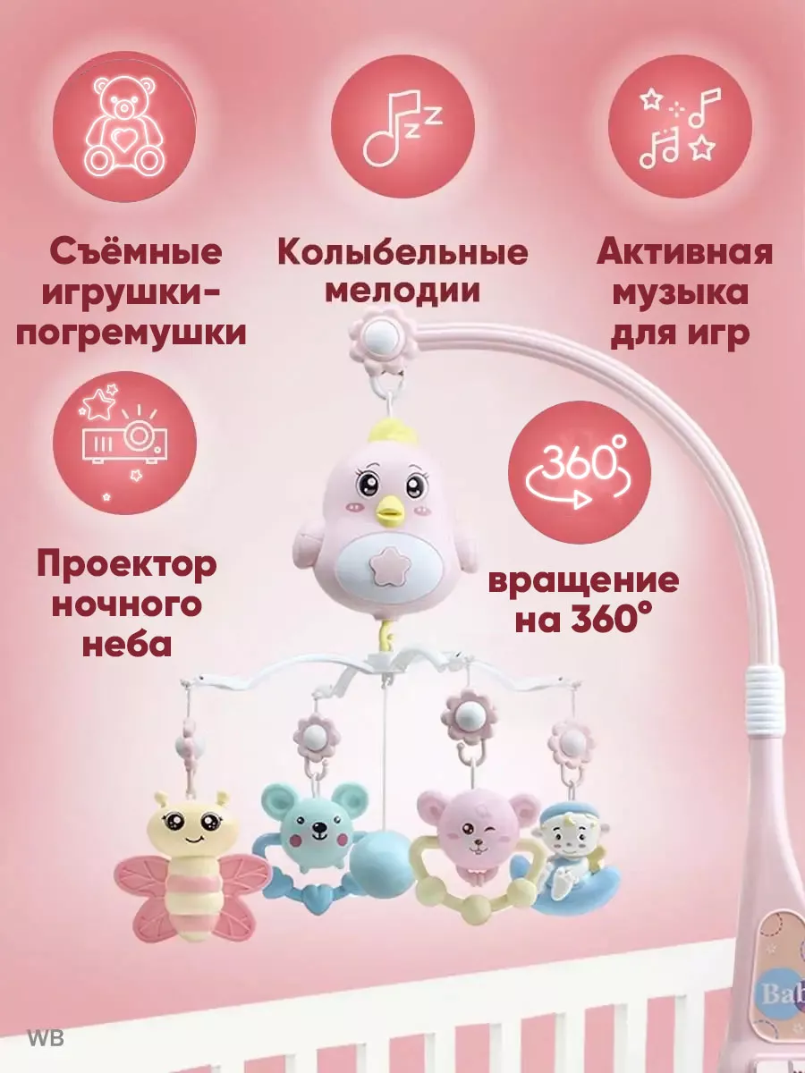 Особенности мобиля вращение на 360 градусов, ночник звездное небо; детский; с проектором на кроватку