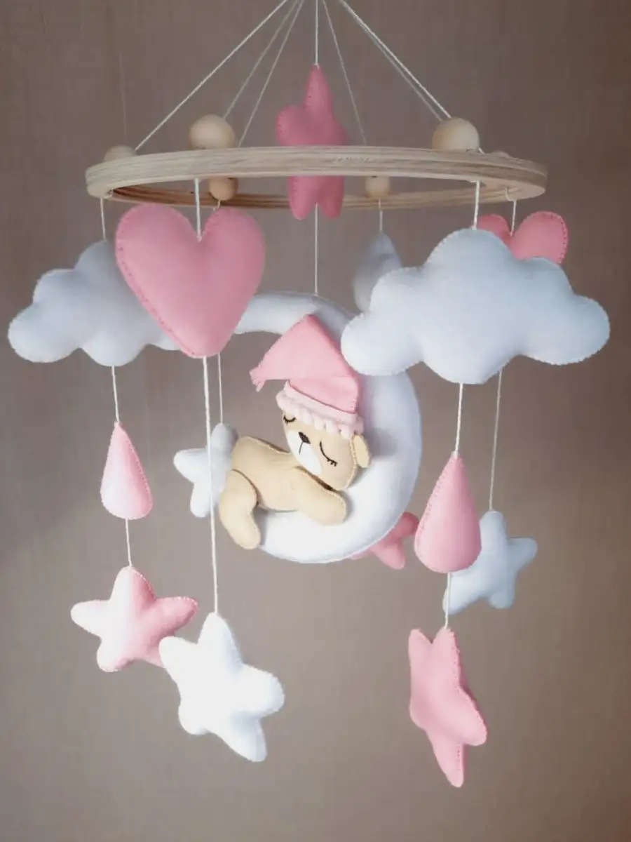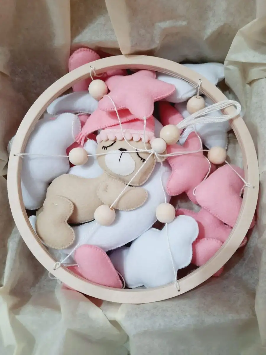 Комплектация Детский мобиль с подвесными игрушками из фетра; подарочная упаковка