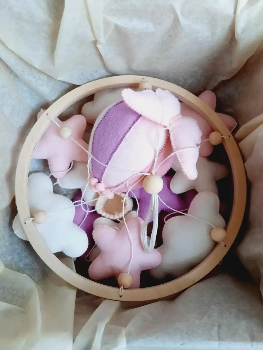 Комплектация Детский мобиль с подвесными игрушками из фетра; подарочная упаковка
