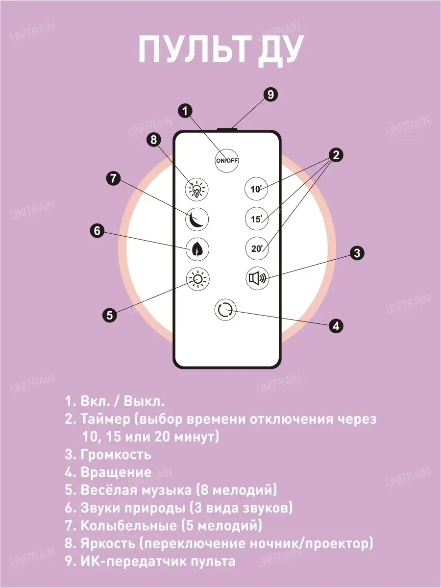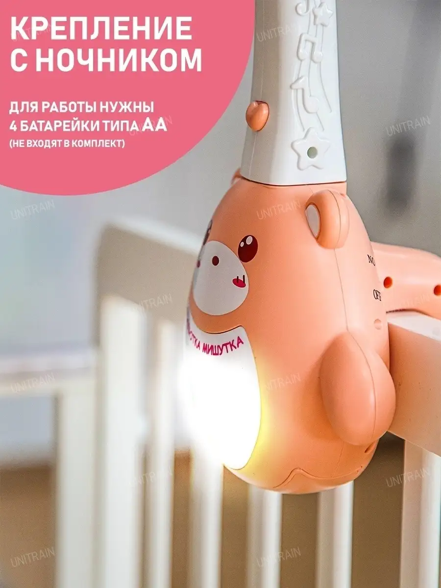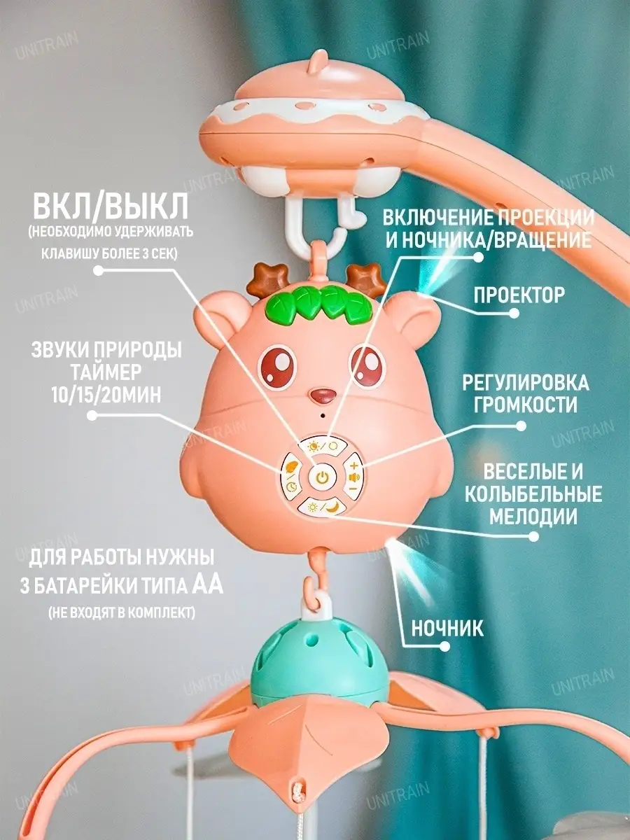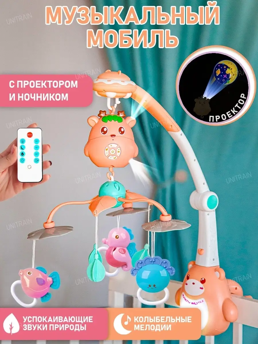 Особенности мобиля вращение игрушек; съемные игрушки; ночник проектор