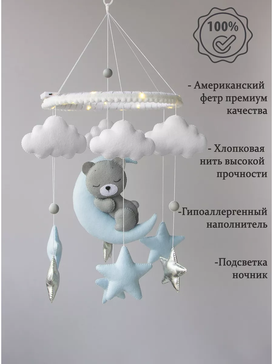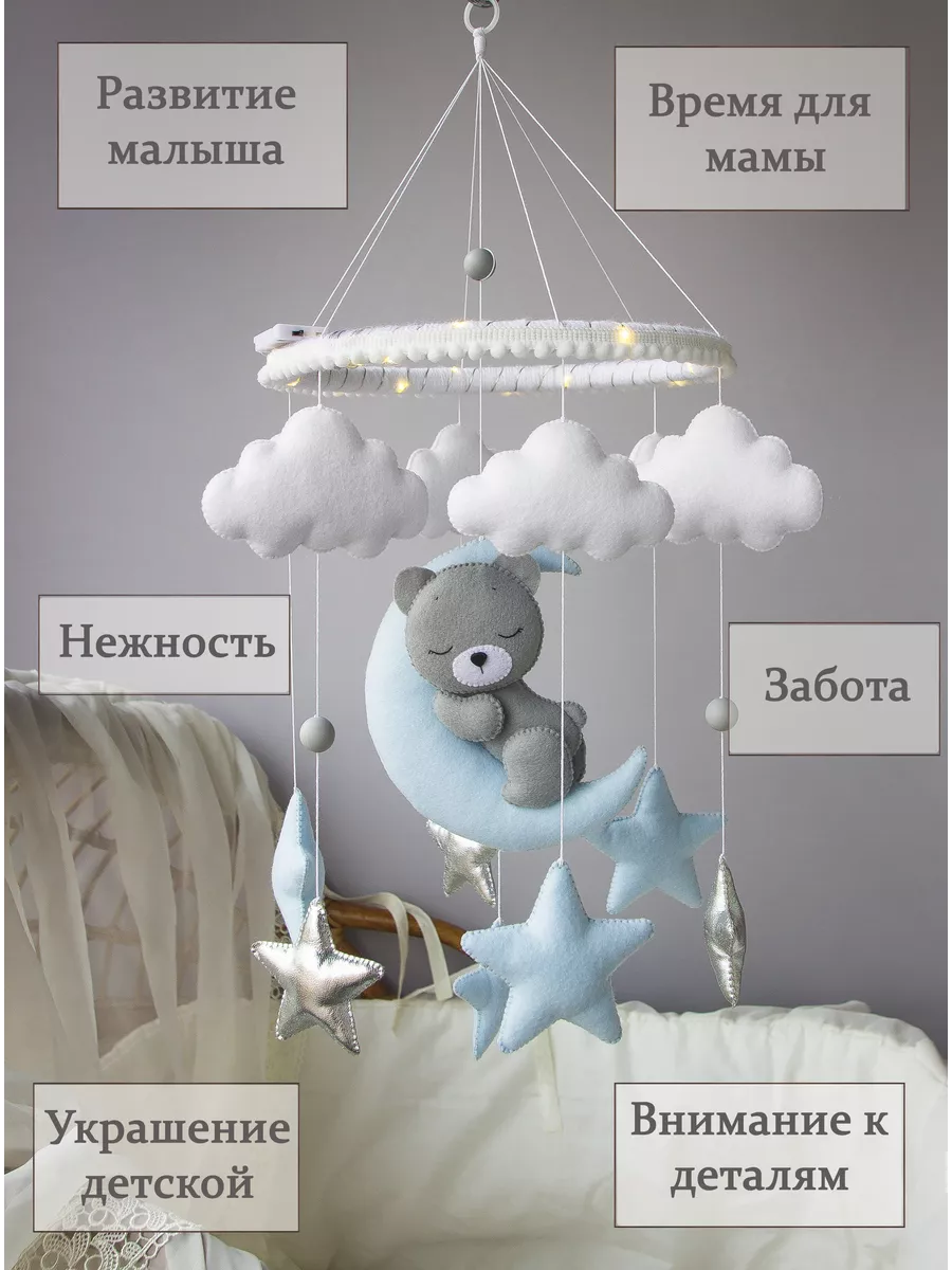 Особенности мобиля вращение игрушек; с подсветкой; музыкальный