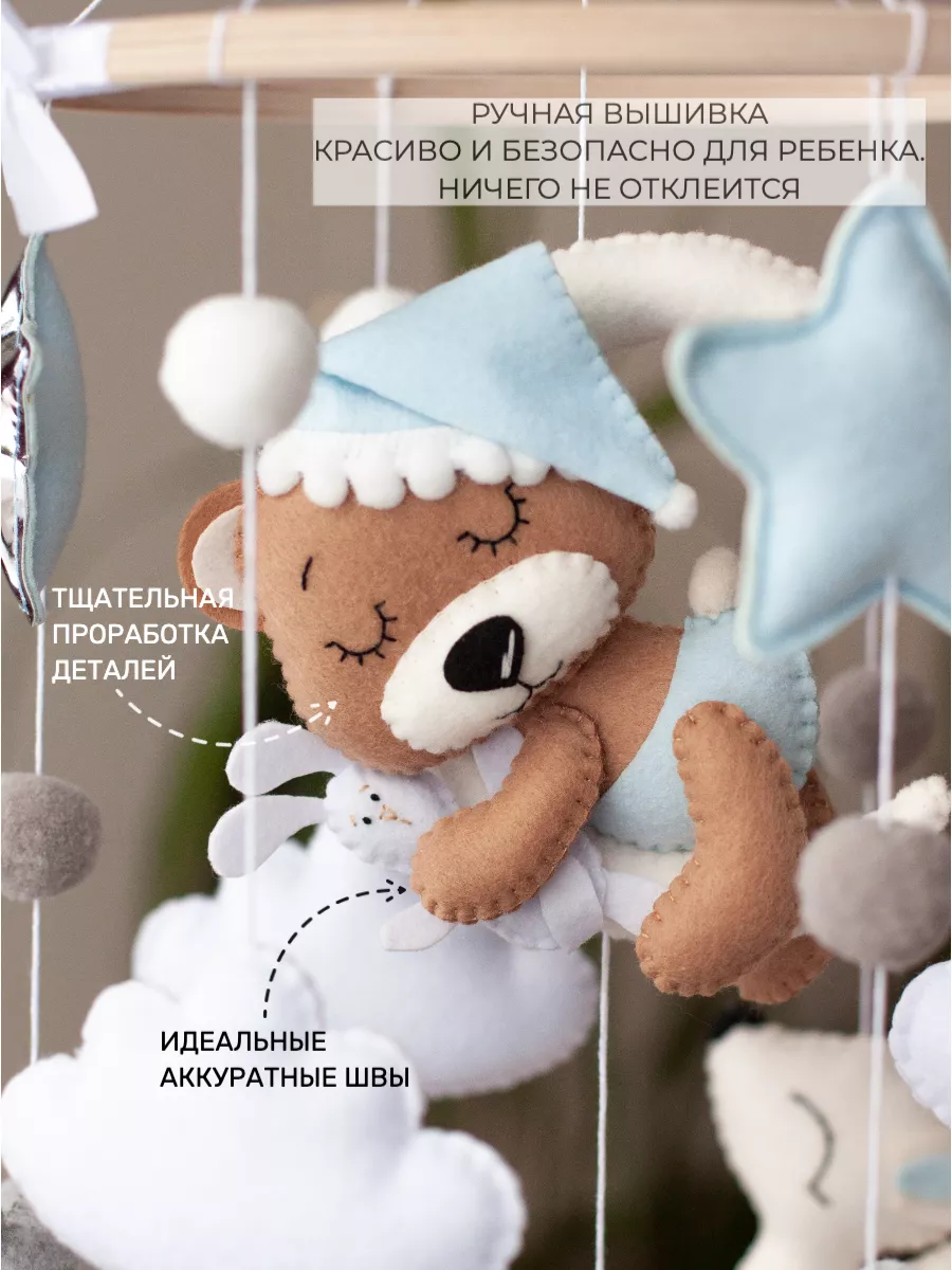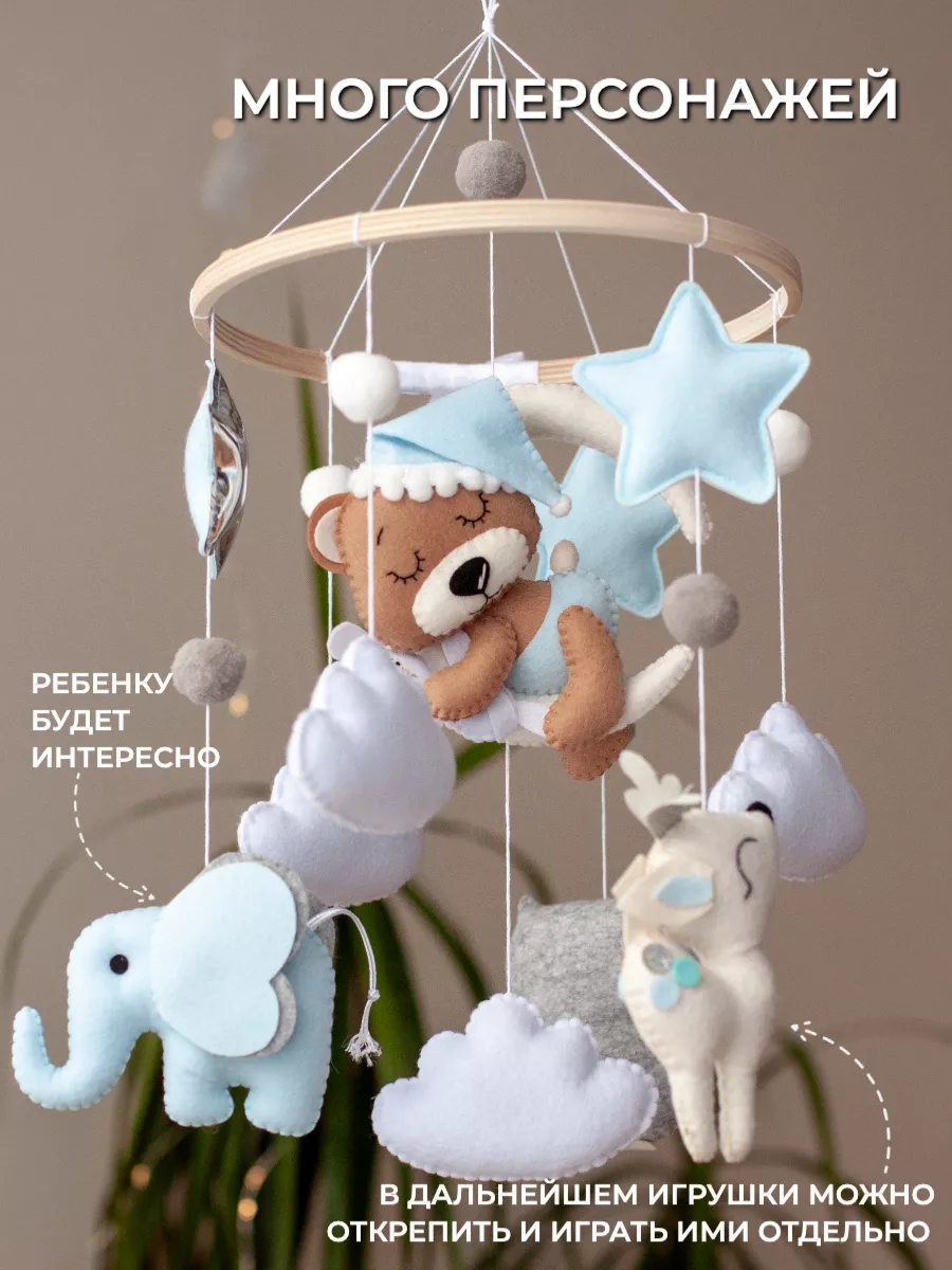 Особенности мобиля вращение игрушек; зеркальце; регулировка громкости