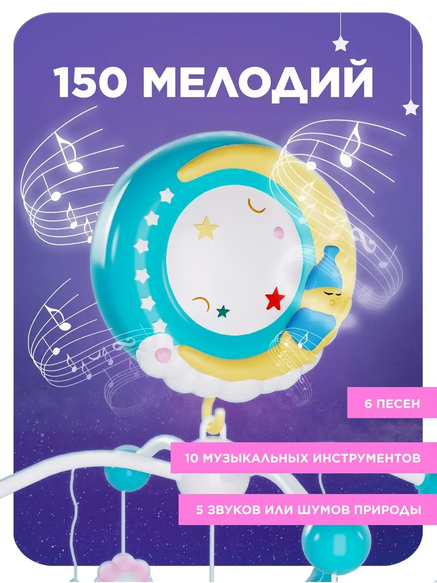 Мобиль в кроватку музыкальный с проектором для малышей