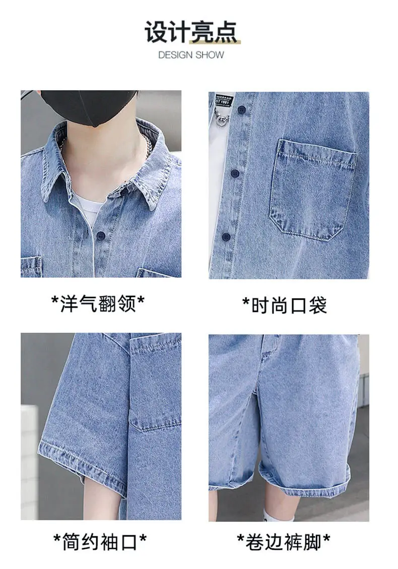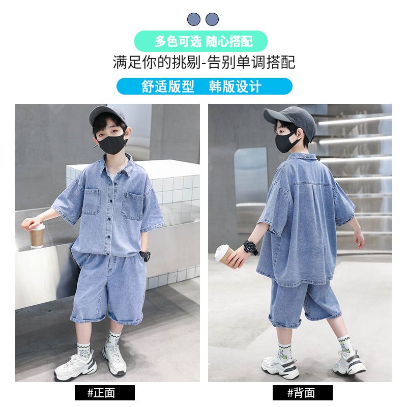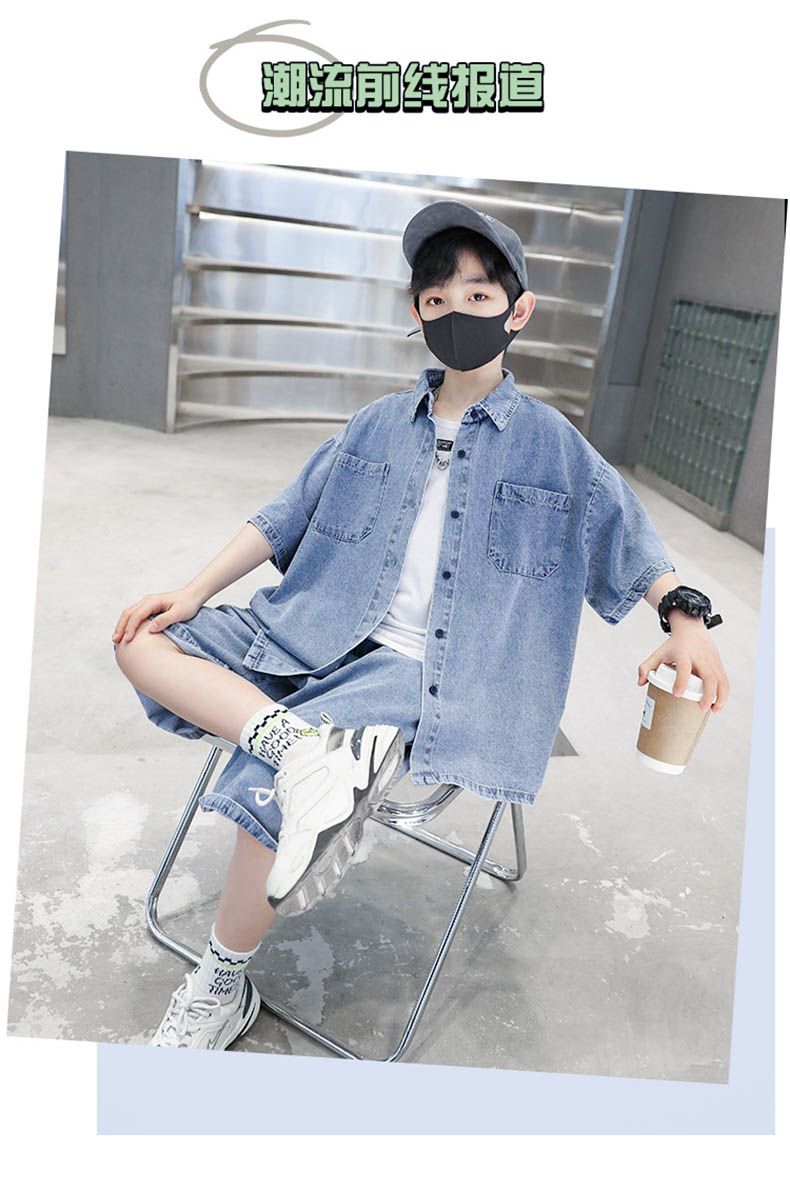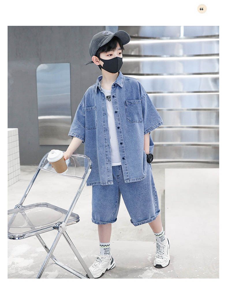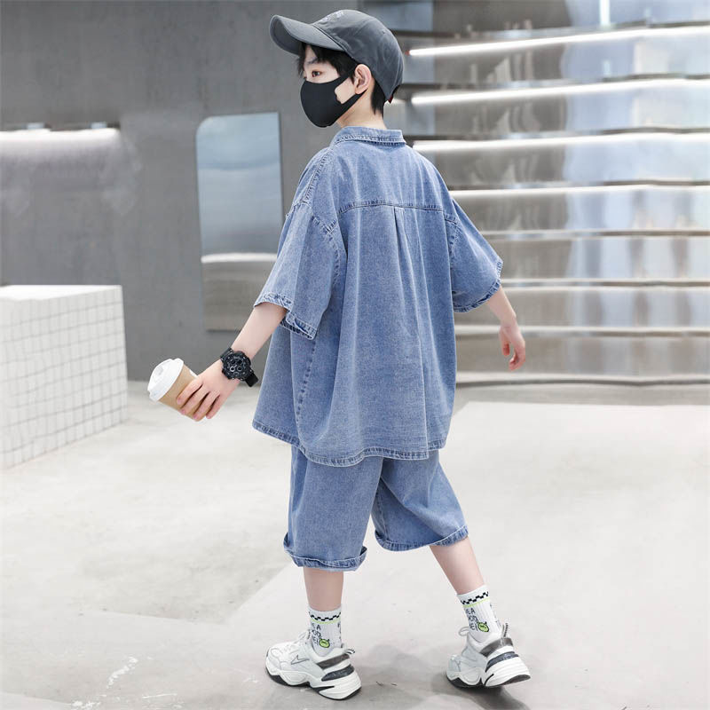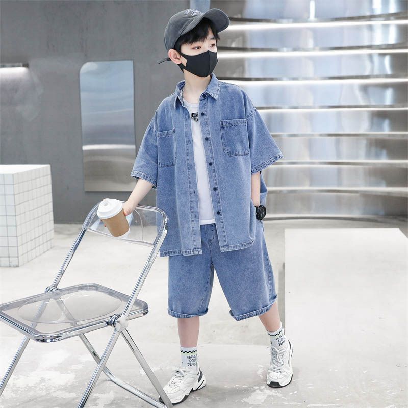 2023 Летний костюм для мальчиков Подростковые джинсовые рубашки с короткими рукавами + брюки Детская хлопковая спортивная одежда из 2 предметов Комплект одежды для мальчиков