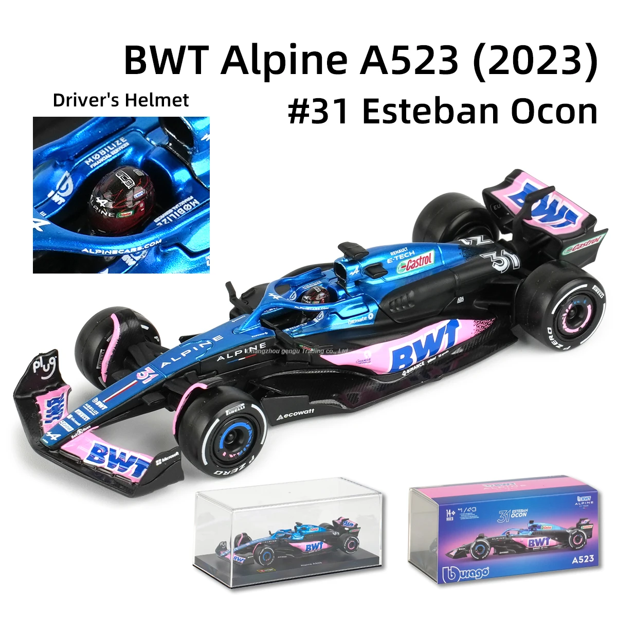 Модель автомобиля Bburago 1:43 BWT Alpine 2023 A523 F1, Коллекционная модель гоночного автомобиля, акриловая коробка