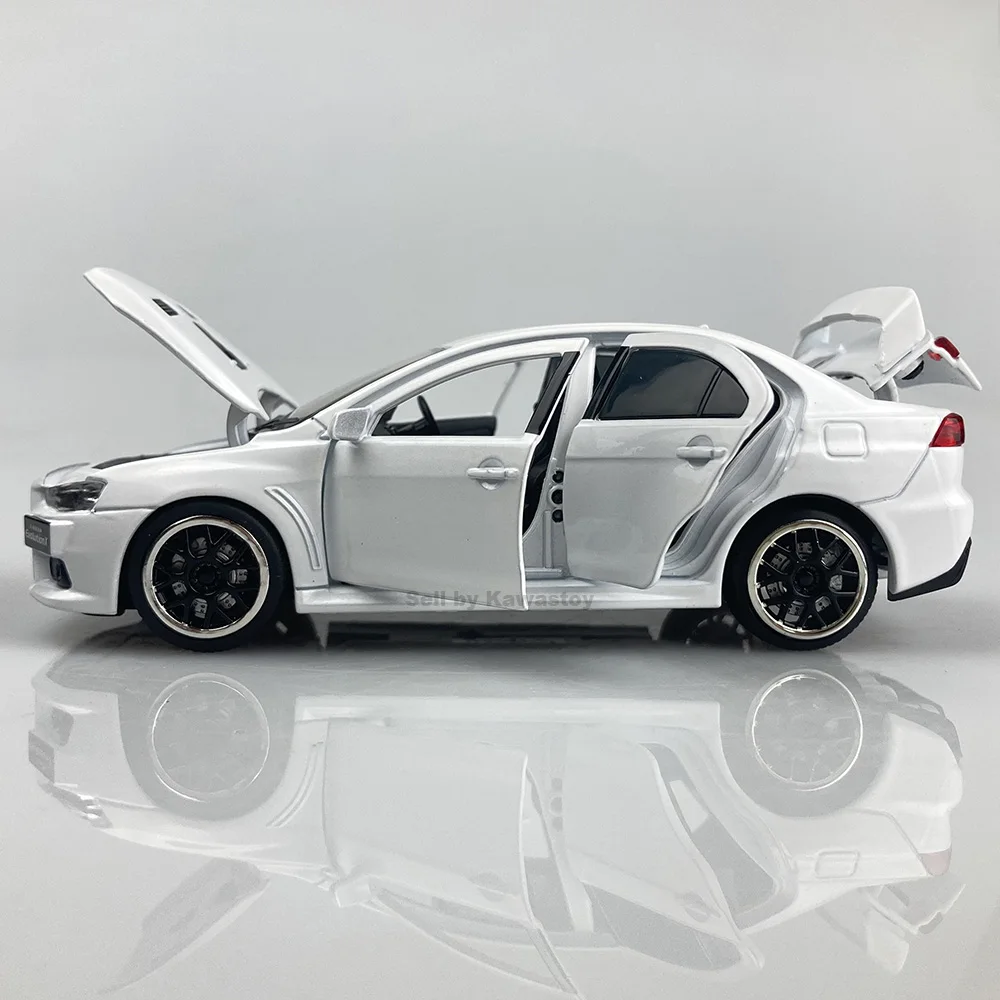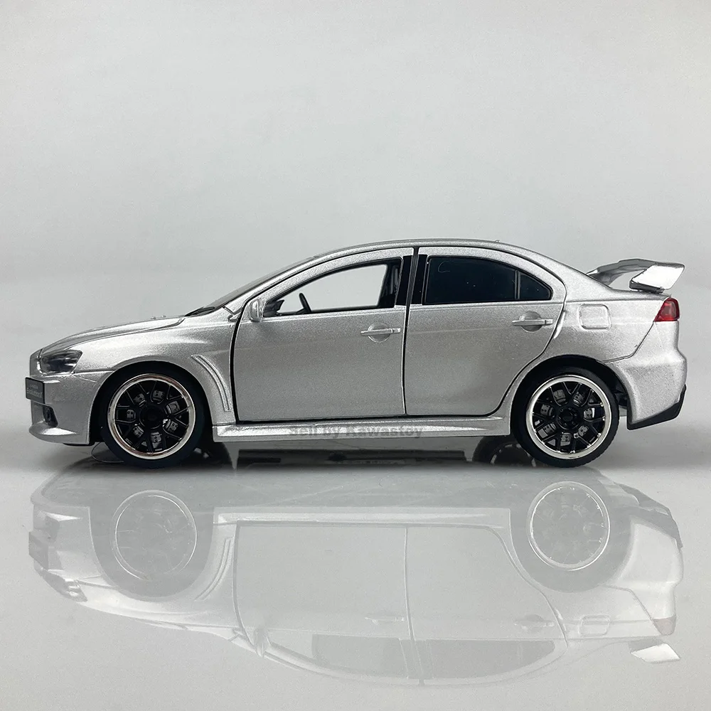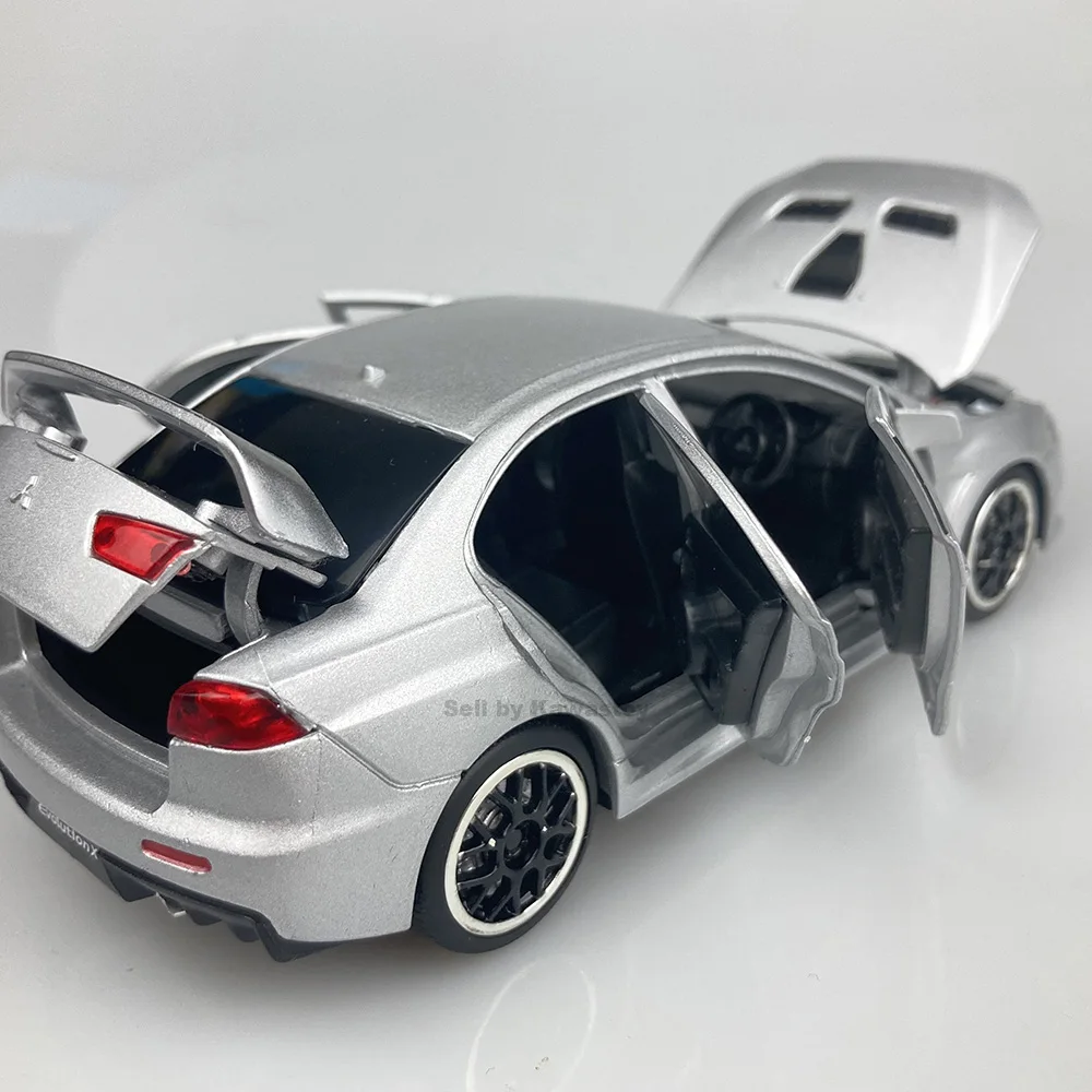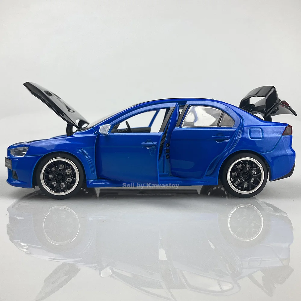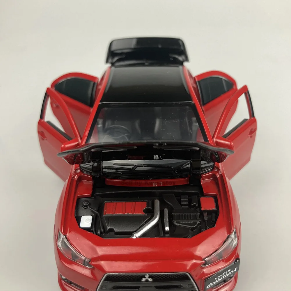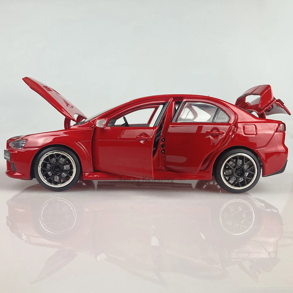 Это 1:32 масштабная литьевая модель Evolution 10, Финальная версия. Это модель с обратной стороны. С помощью нажатия на него вниз будет звук двигателя и светильник. Модель Размеры: 14x5,5x4,5 см. Абсолютно новый в коробке.
