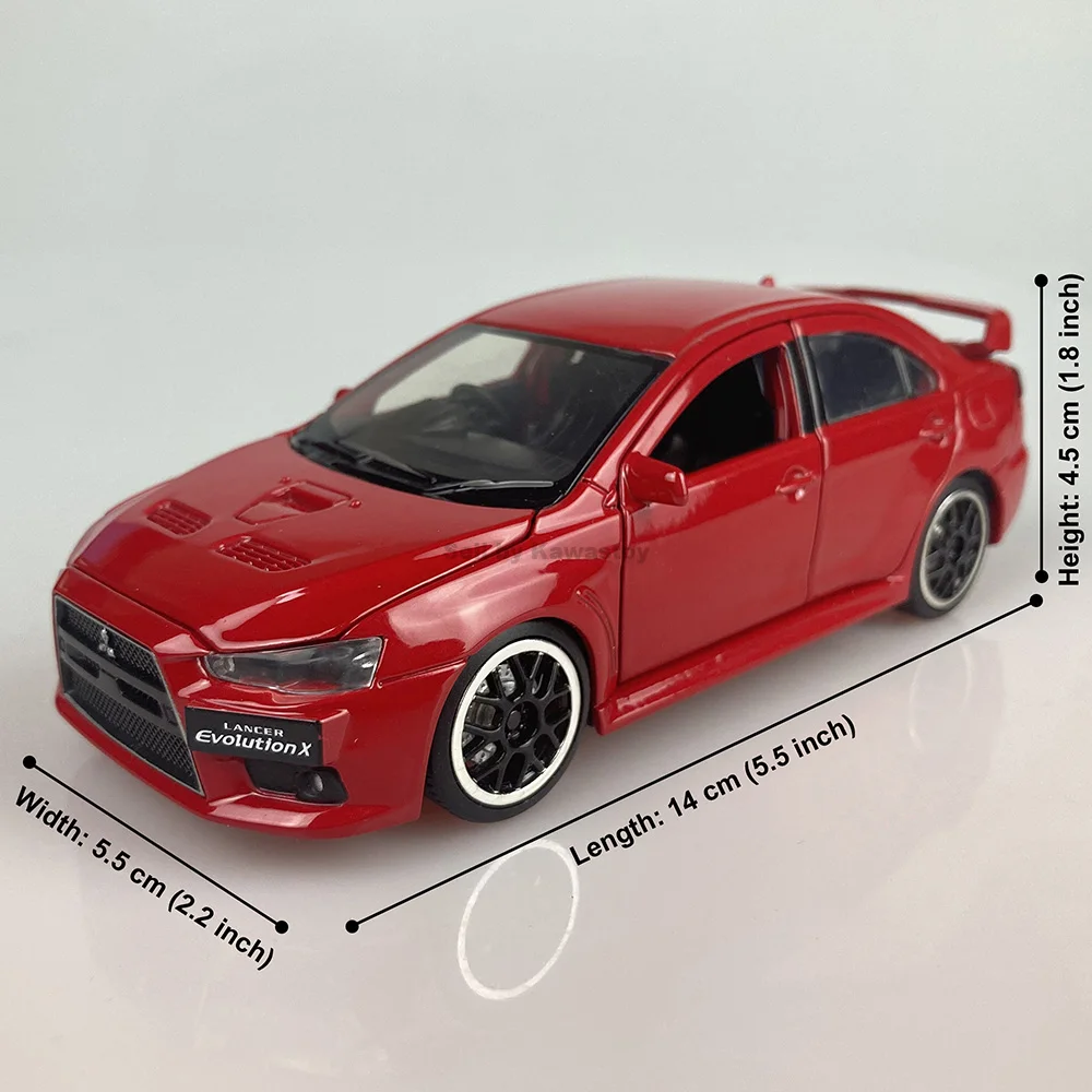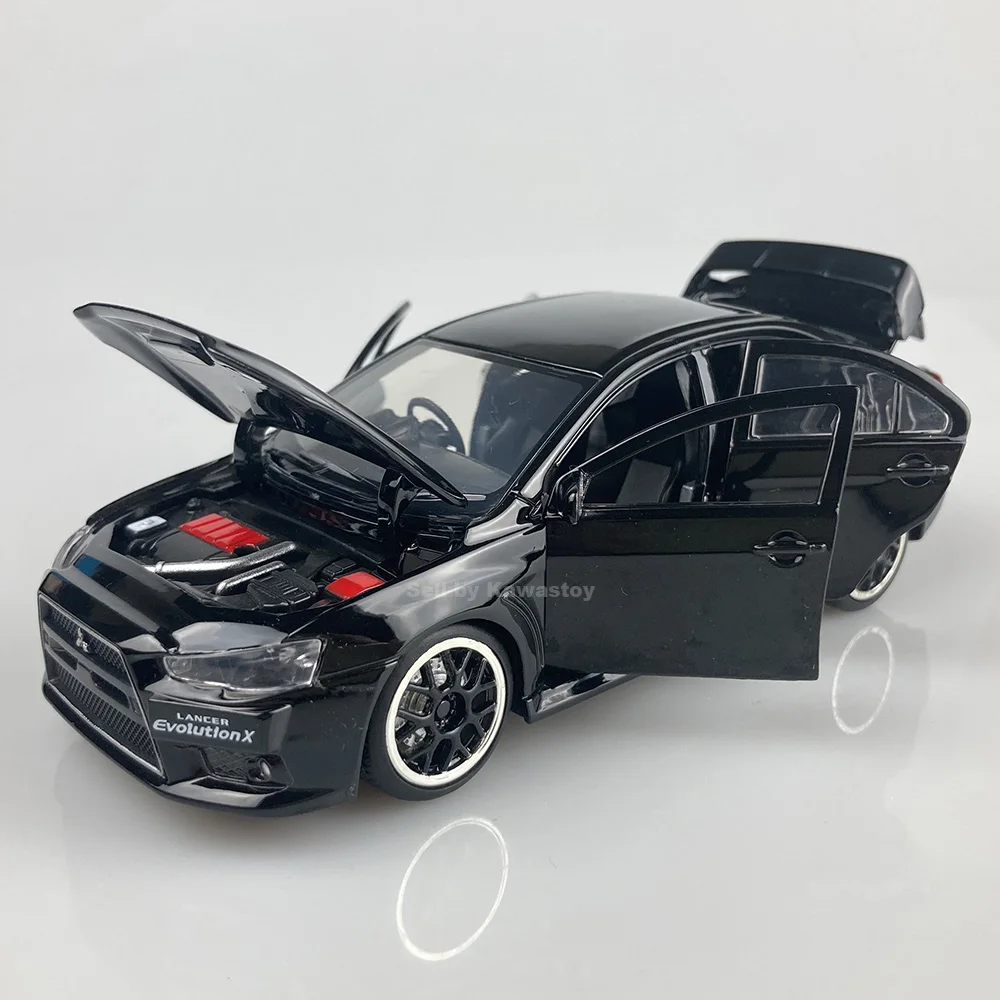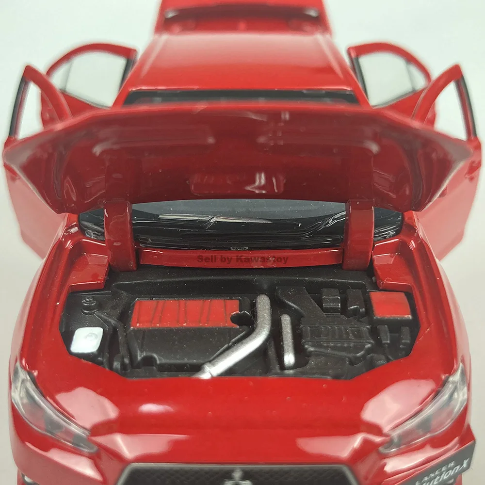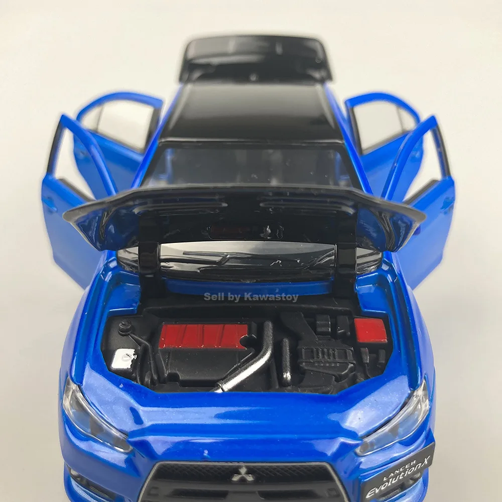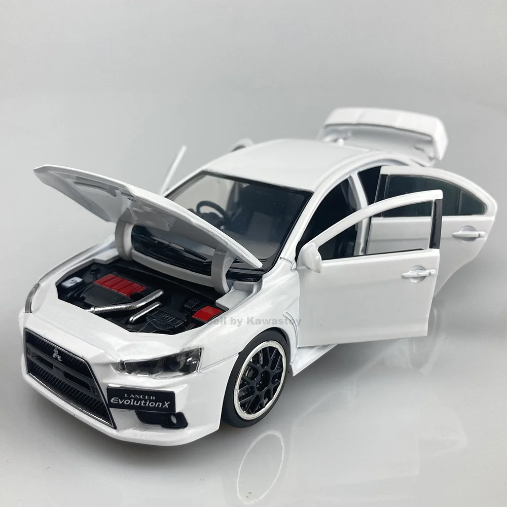 Это 1:32 масштабная литьевая модель Evolution 10, Финальная версия. Это модель с обратной стороны. С помощью нажатия на него вниз будет звук двигателя и светильник. Модель Размеры: 14x5,5x4,5 см. Абсолютно новый в коробке.