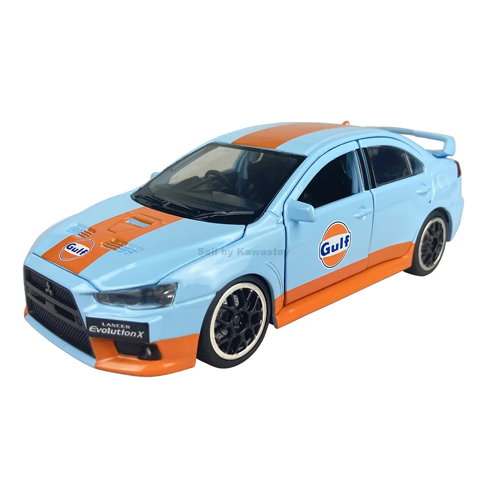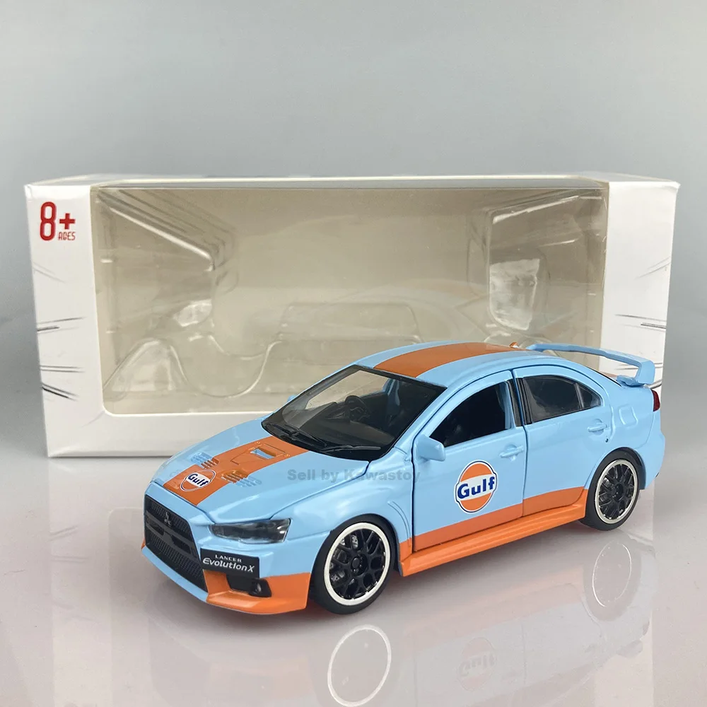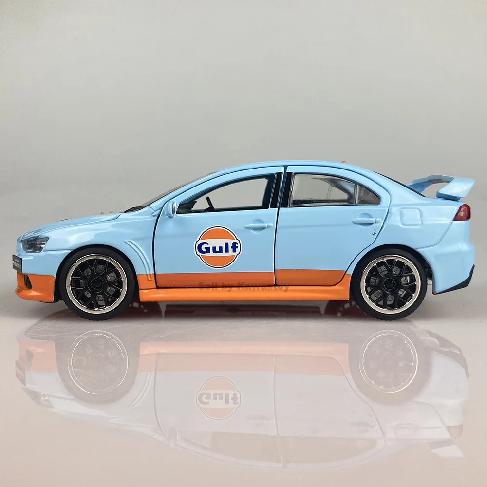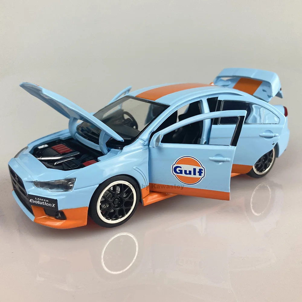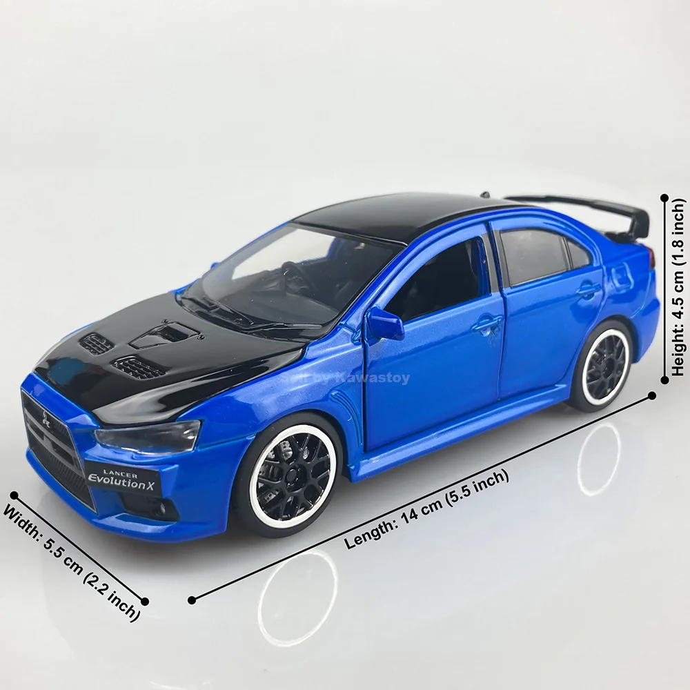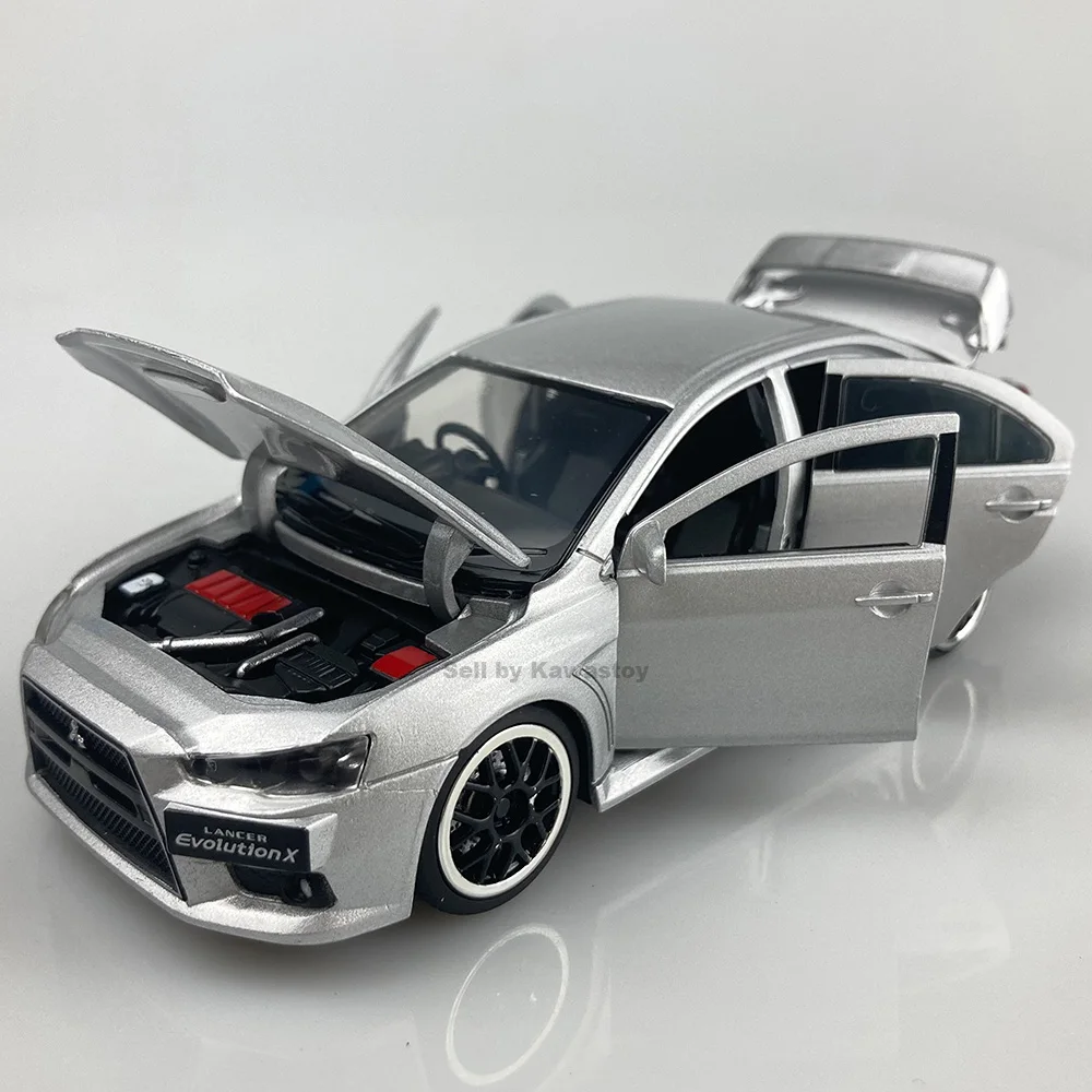 Это 1:32 масштабная литьевая модель Evolution 10, Финальная версия. Это модель с обратной стороны. С помощью нажатия на него вниз будет звук двигателя и светильник. Модель Размеры: 14x5,5x4,5 см. Абсолютно новый в коробке.