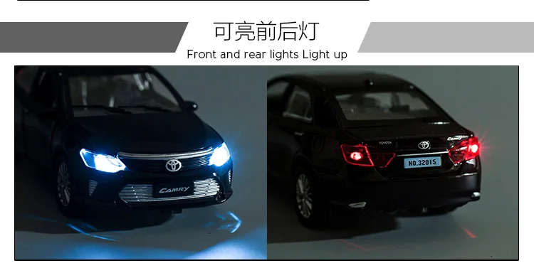 Модель автомобиля TOYOTA CAMRY 7-го поколения 1:32, литая и Игрушечная модель автомобиля, металлическая Игрушечная модель автомобиля, имитация звука, фотоподарок