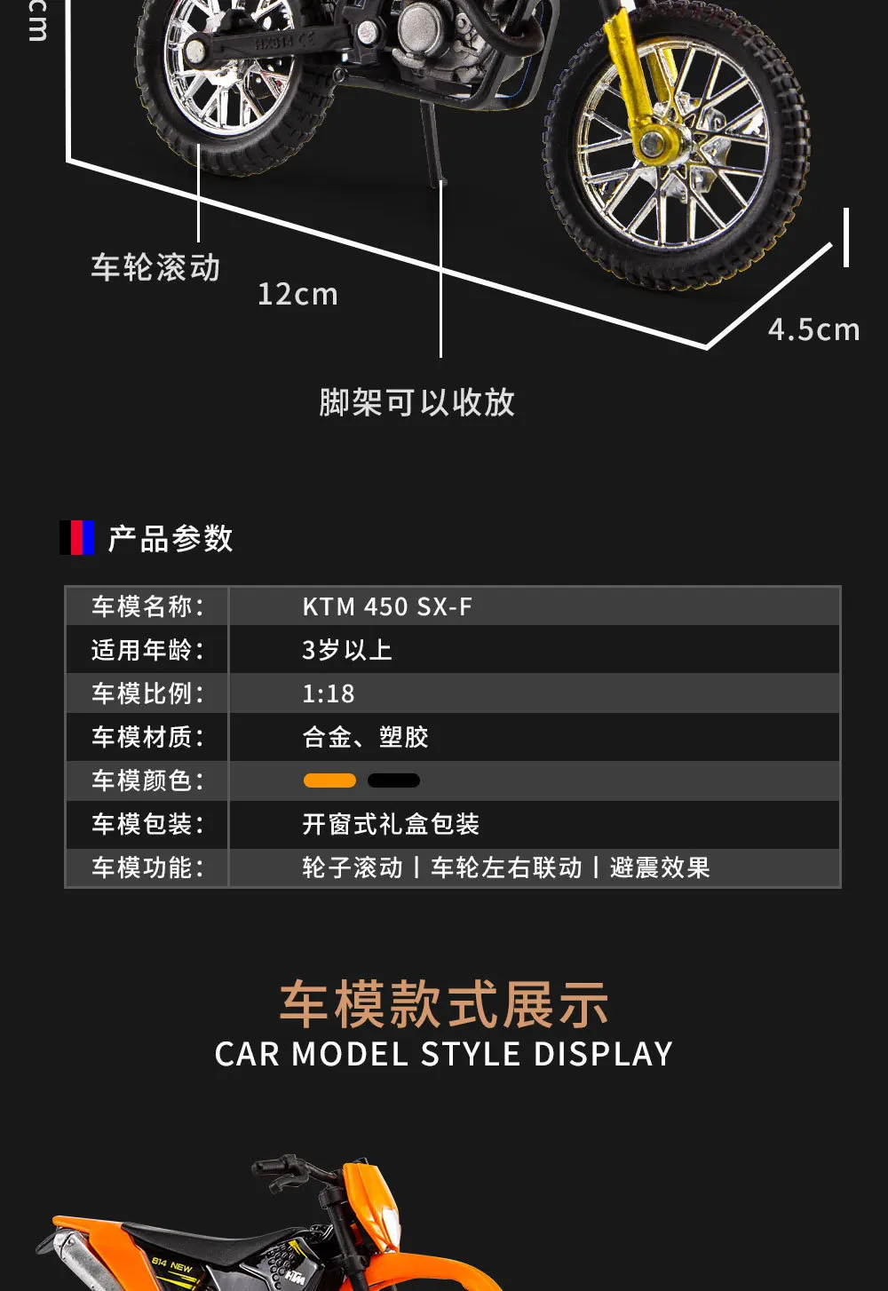 Модель мотоцикла литая из сплава 1:18 KTM450