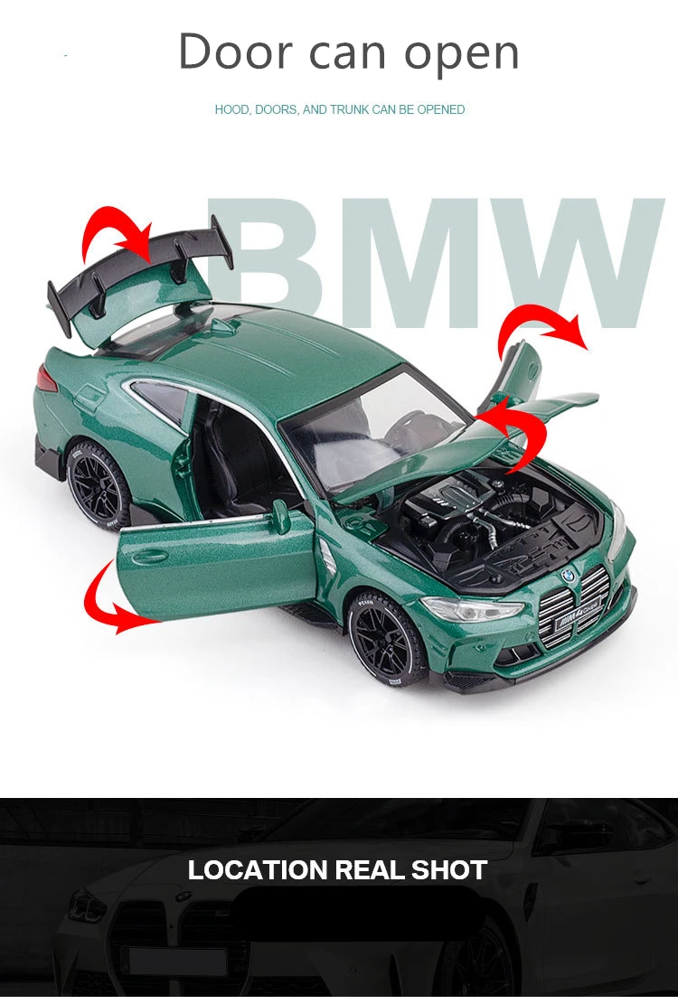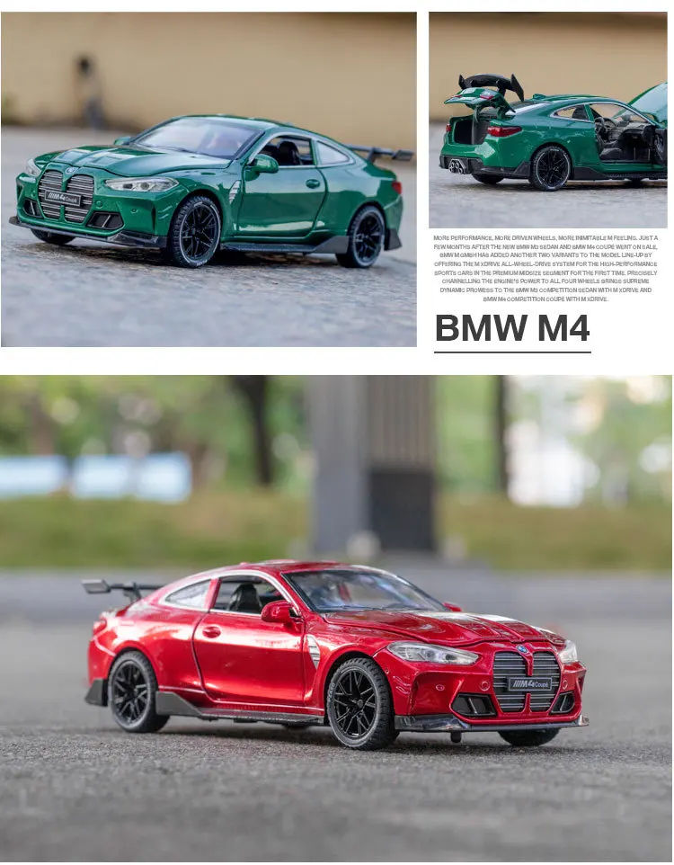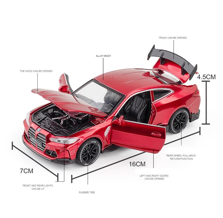 Модель спортивного автомобиля BMW M4 Coupe, 1:32, Литые и игрушечные автомобили, металлическая Игрушечная модель автомобиля, модель со звуком светильник, коллекция, подарок для детей