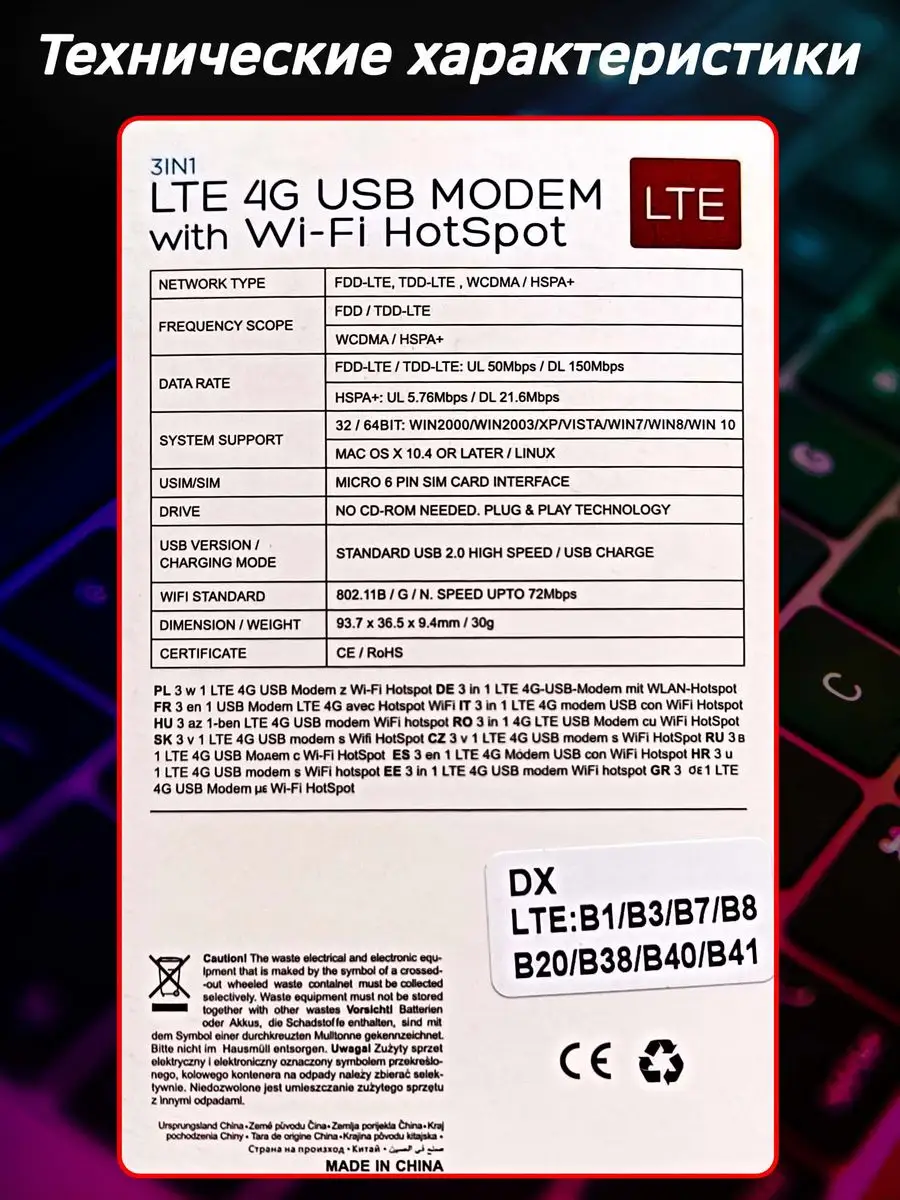 Артикул 161022787 Модель USB модем 4G; 4G модем; модем 4g wifi
