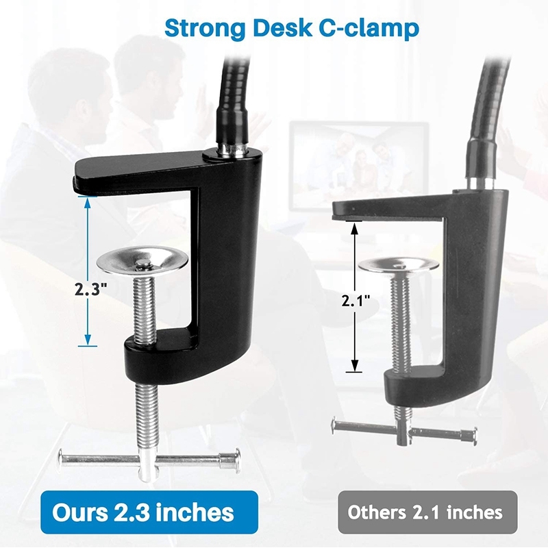 Более прочный настольный C-образный зажим: с настольным C-образным зажимом вы можете использовать эту подставку для крепления веб-камеры на столе, столе, буфете, кровати и т. Д. . Максимальная толщина c-образного зажима стола составляет 2,3 дюйма.