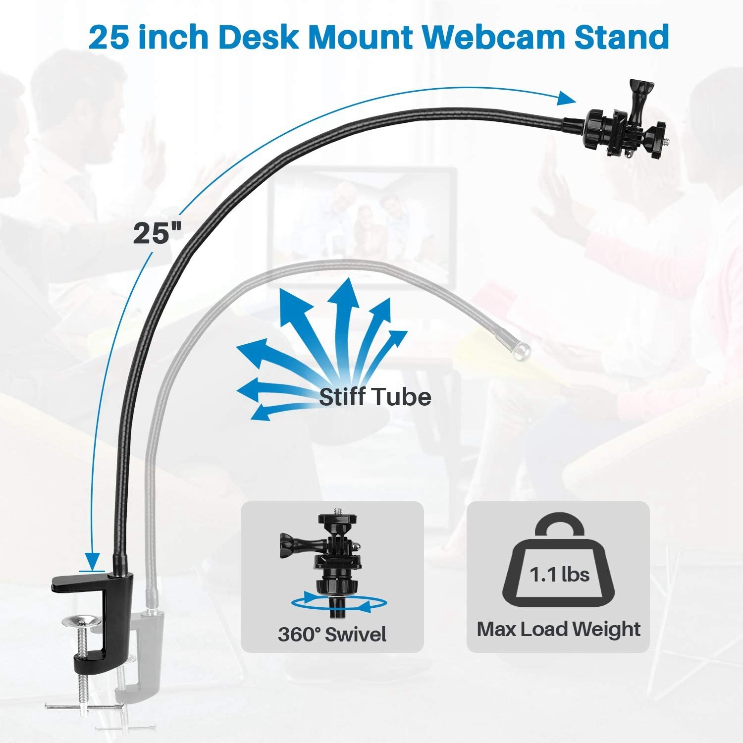 Прочная и гибкая гусиная шея: наша подставка для штатива для веб-камеры имеет гусиная шея, покрытая антикоррозийным покрытием, которое является гибким, что вы можете регулировать угол, который вам нравится. Секрет того, чтобы сделать эту стойку длиной 25 дюймов более устойчивой, заключается в том, чтобы согнуть гусиную шею до S-образной формы при использовании.