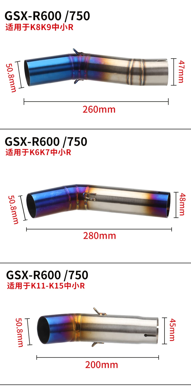 Выхлопная труба мотоцикла изменяет соединение средней трубы для GSX-R750 GSXR750 GSX-R600 GSXR250 K6K8K9K11K15