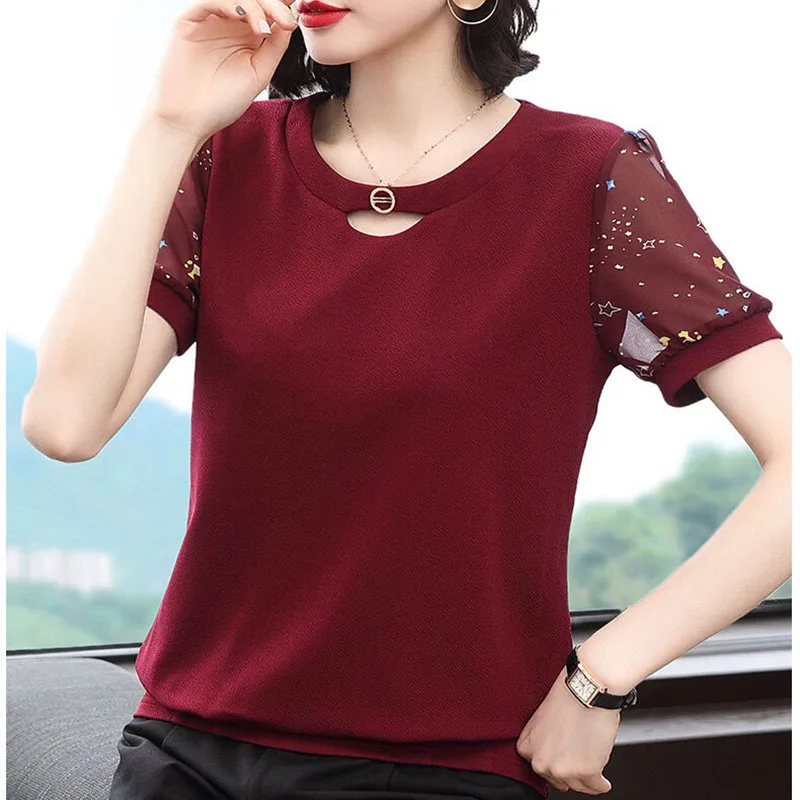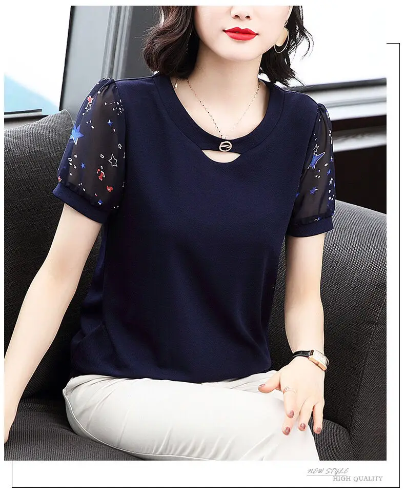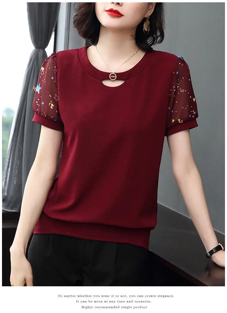 Модная газовая блузка с круглым вырезом и вырезами, женская одежда, новинка весны 2023, повседневные Пуловеры большого размера, универсальная рубашка для поездок