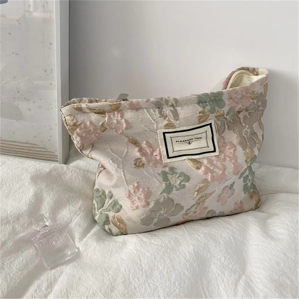 Модная косметичка с французским тиснением в виде цветка, простая вместительная портативная ручная сумка с принтом для отдыха