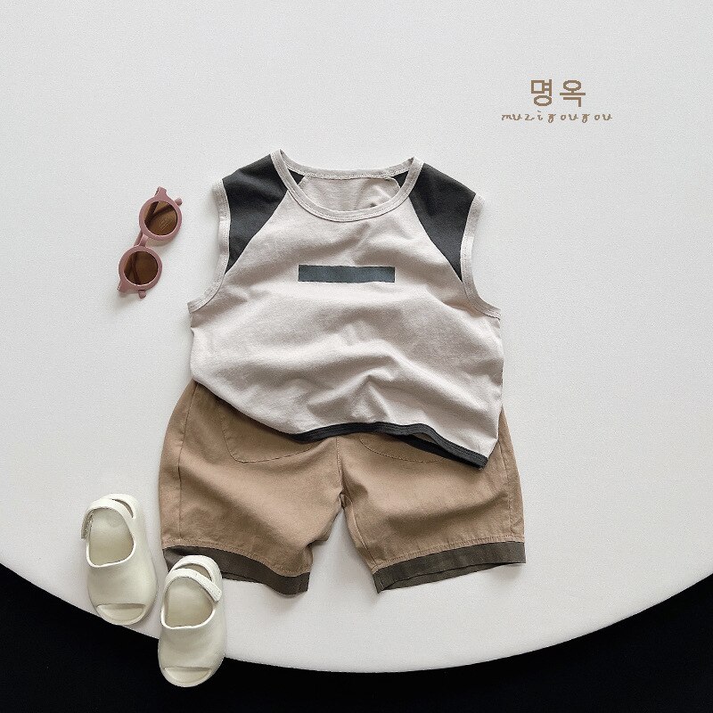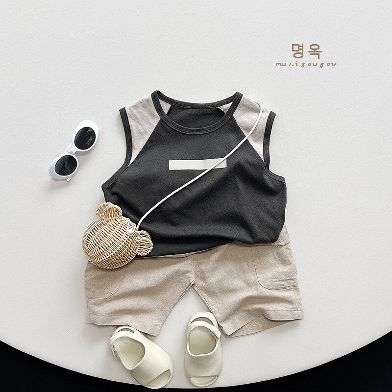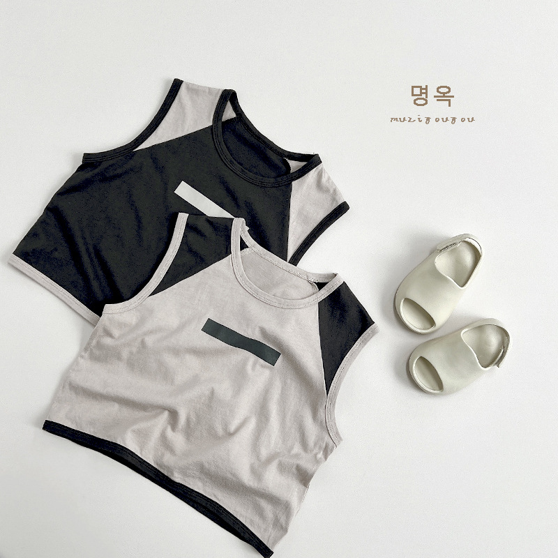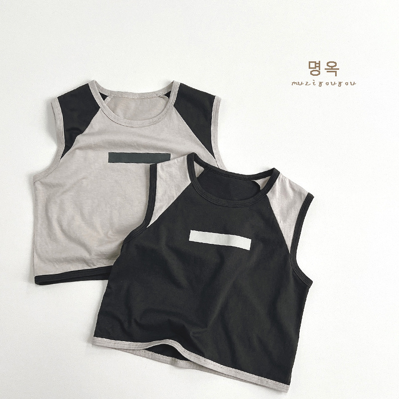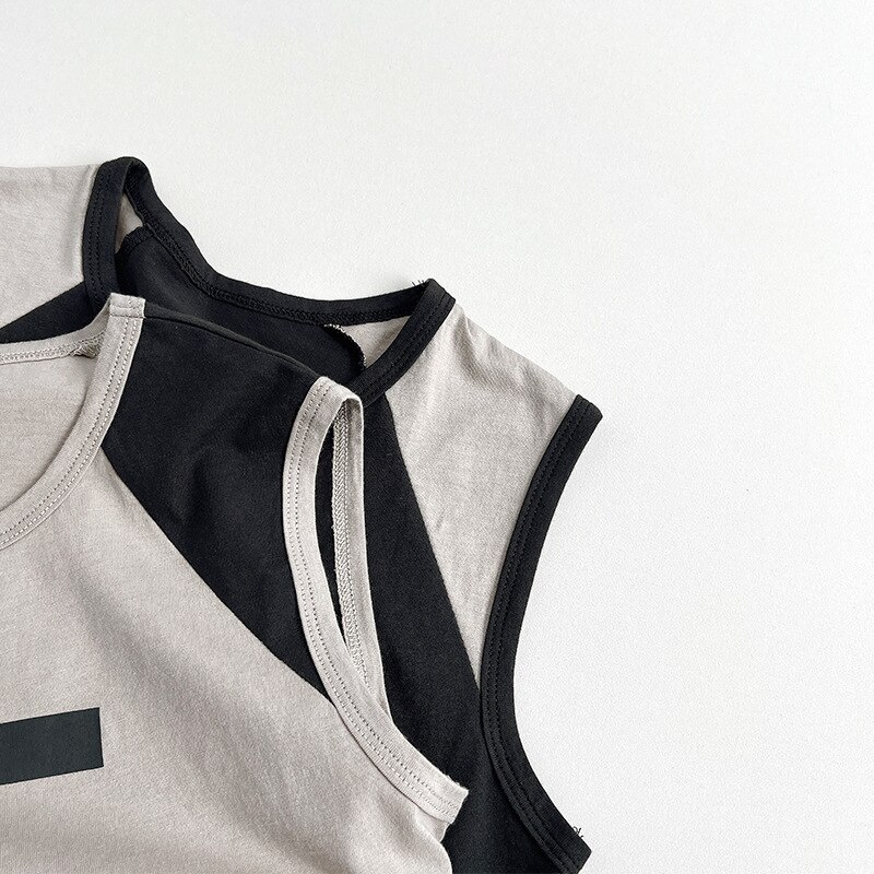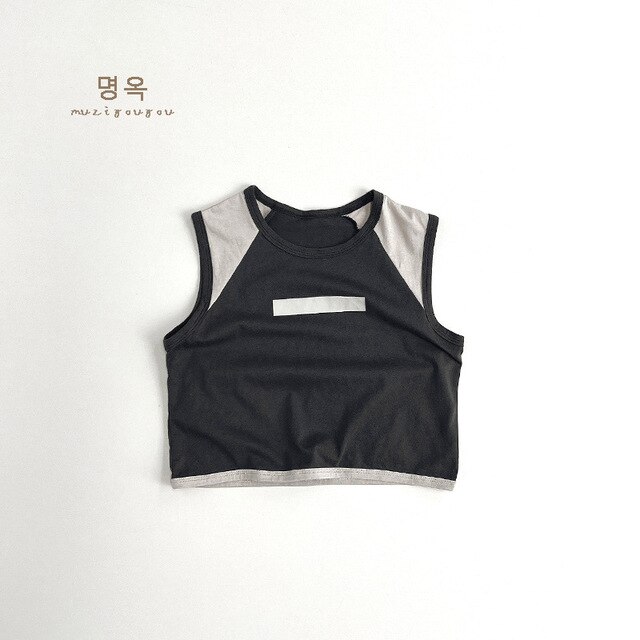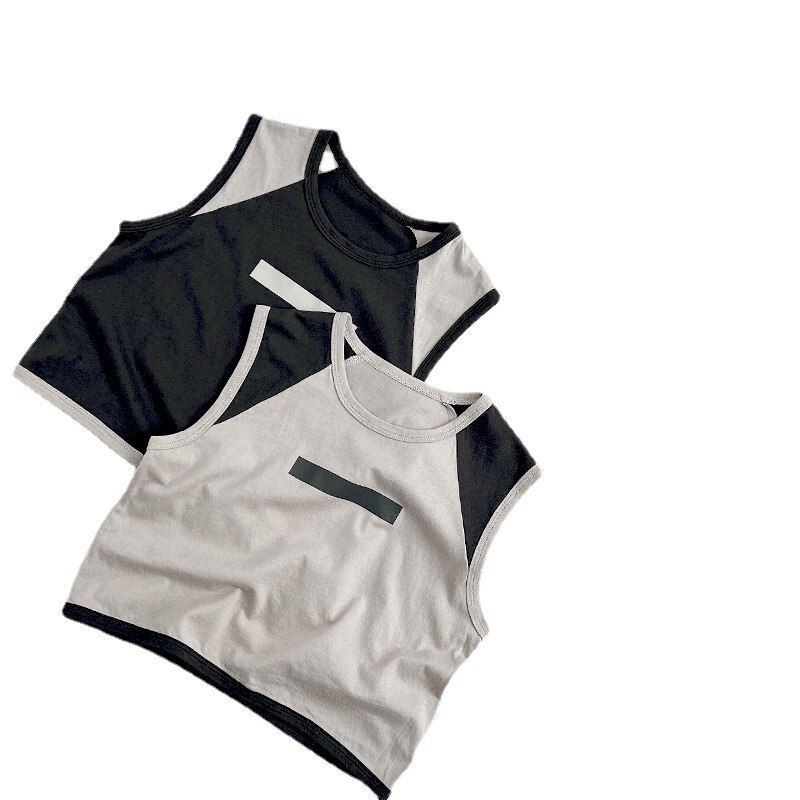 Модная крутая футболка-жилет для мальчиков и девочек, Летний Новый детский топ с цветными блоками в японском стиле