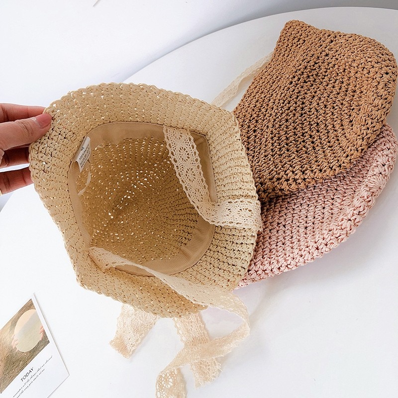Модная кружевная детская шляпа, летняя Соломенная Шапка с бантом для маленьких девочек, Пляжная детская Панама, шляпа принцессы, детские шапки и кепки для детей, 1 шт.