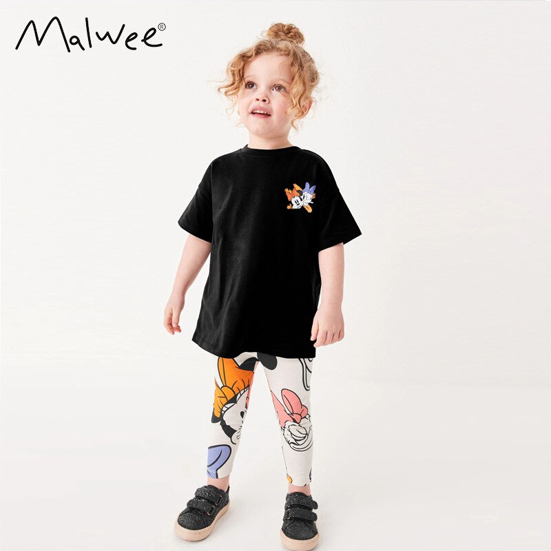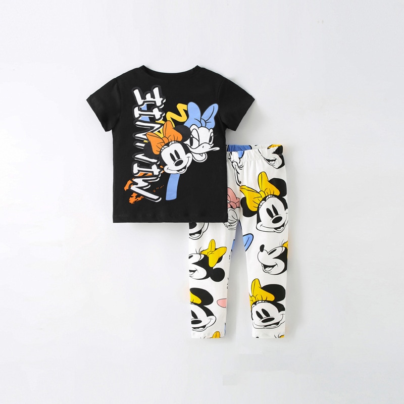 Модная одежда для маленьких девочек с Минни, летние костюмы, футболки с коротким рукавом + короткие штаны, детская одежда, 2 шт./наряд