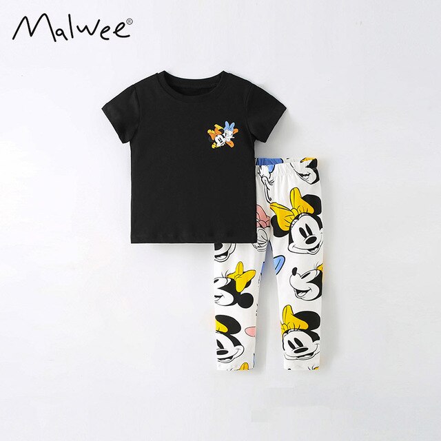 Модная одежда для маленьких девочек с Минни, летние костюмы, футболки с коротким рукавом + короткие штаны, детская одежда, 2 шт./наряд