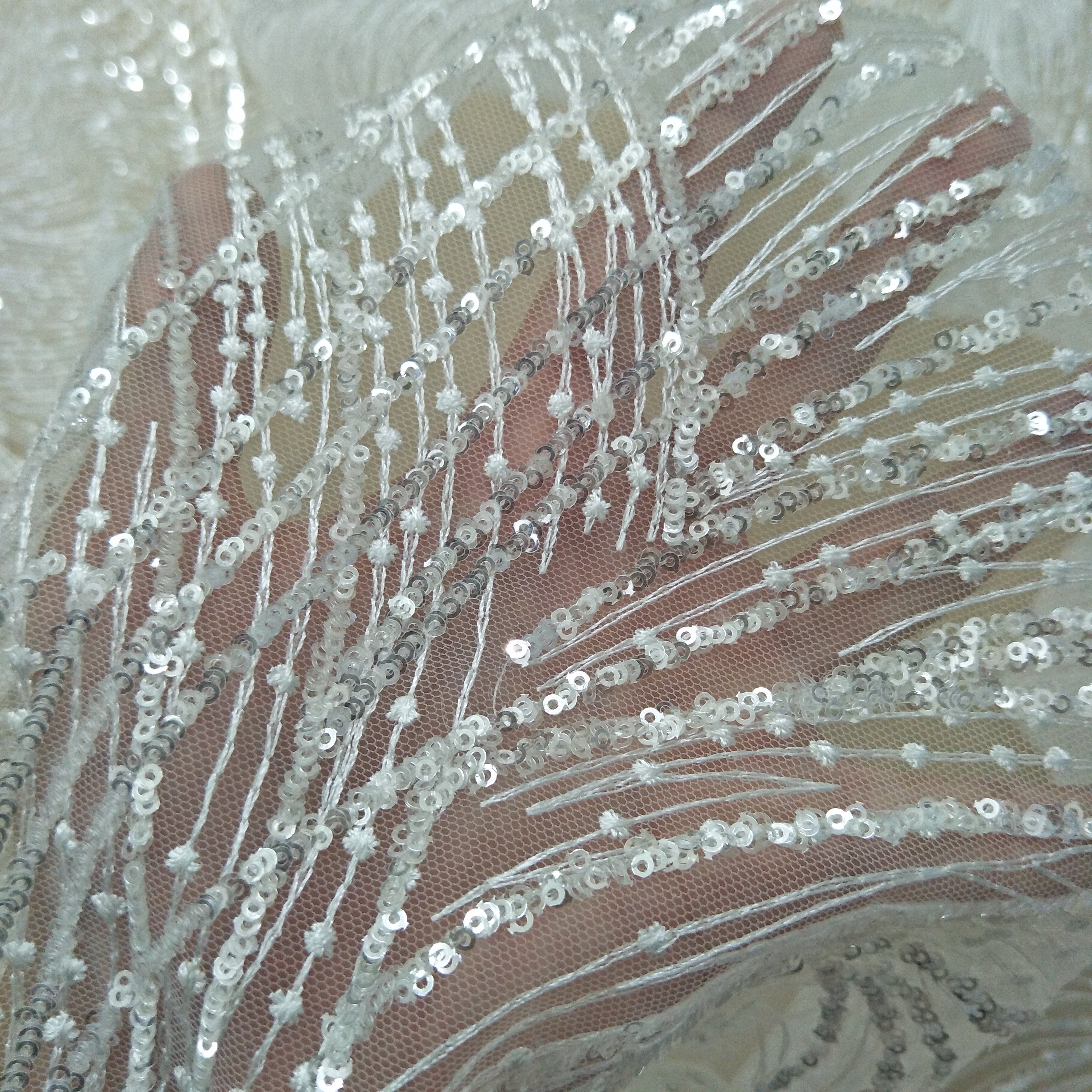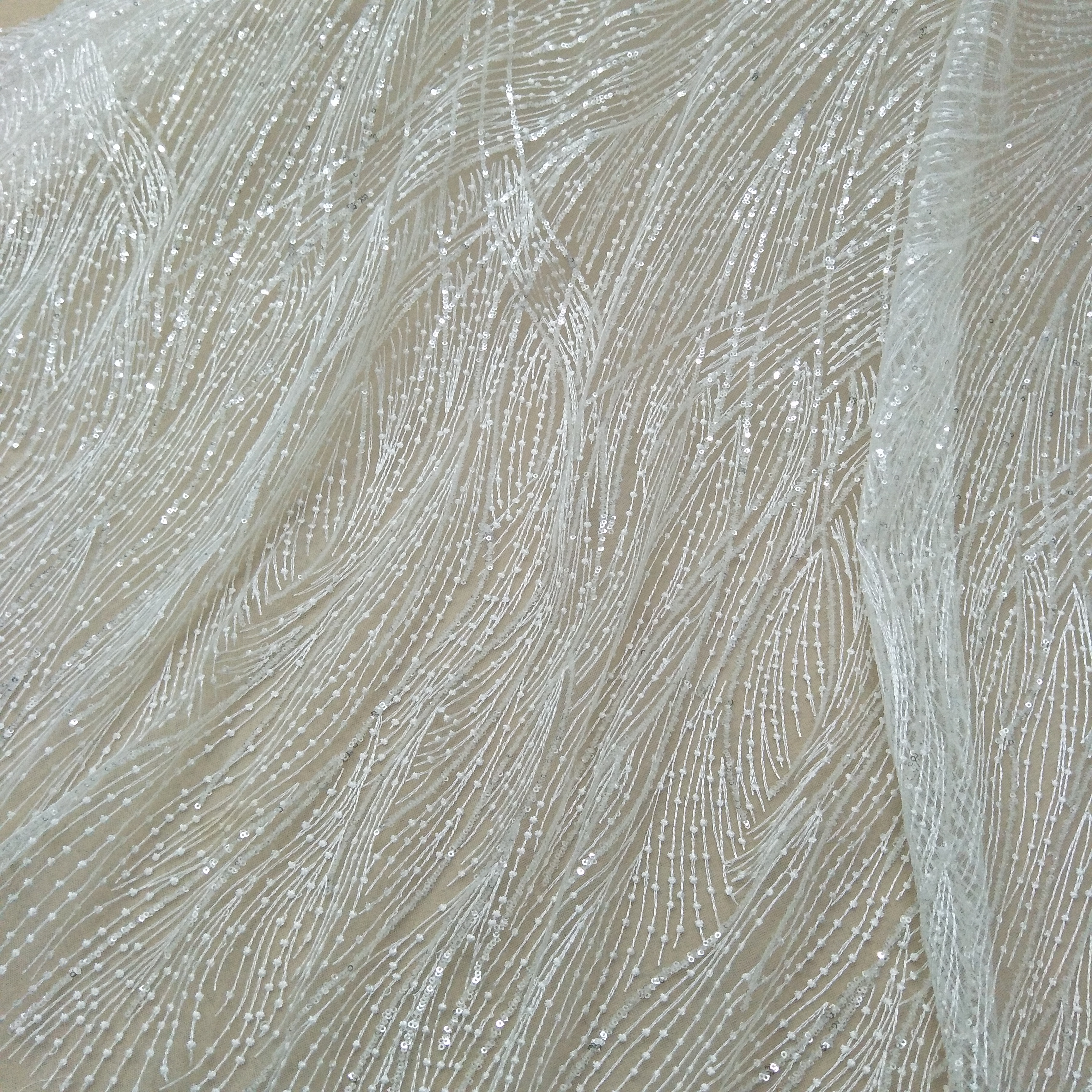 Модная свадебная кружевная ткань с серебряными блестками, кружевное свадебное платье, ширина 130 см, кружево с вышивкой, продажа по ярду