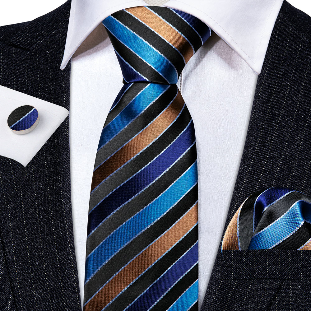 Модные черные коричневые полосатые мужские шелковые броши для галстука мужской галстук носовой платок Запонки Наборы для мужчин подарок дизайнерский Барри Ван