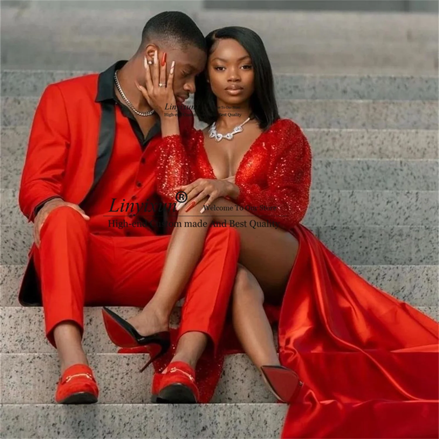 Модные красные свадебные мужские костюмы из 2 предметов, пиджак и брюки, смокинг для жениха, мужской блейзер для выпусквечерние вечера, мужской костюм для мужчин