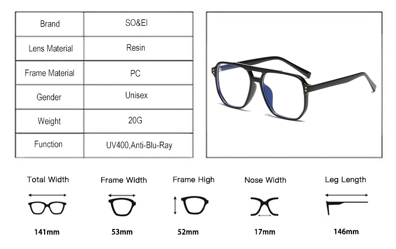Модные квадратные очки SO & EI TR90 с двойной перемычкой, женские очки с прозрачной защитой от голубого света, очки для работы за компьютером в стиле ретро, мужские оптические очки