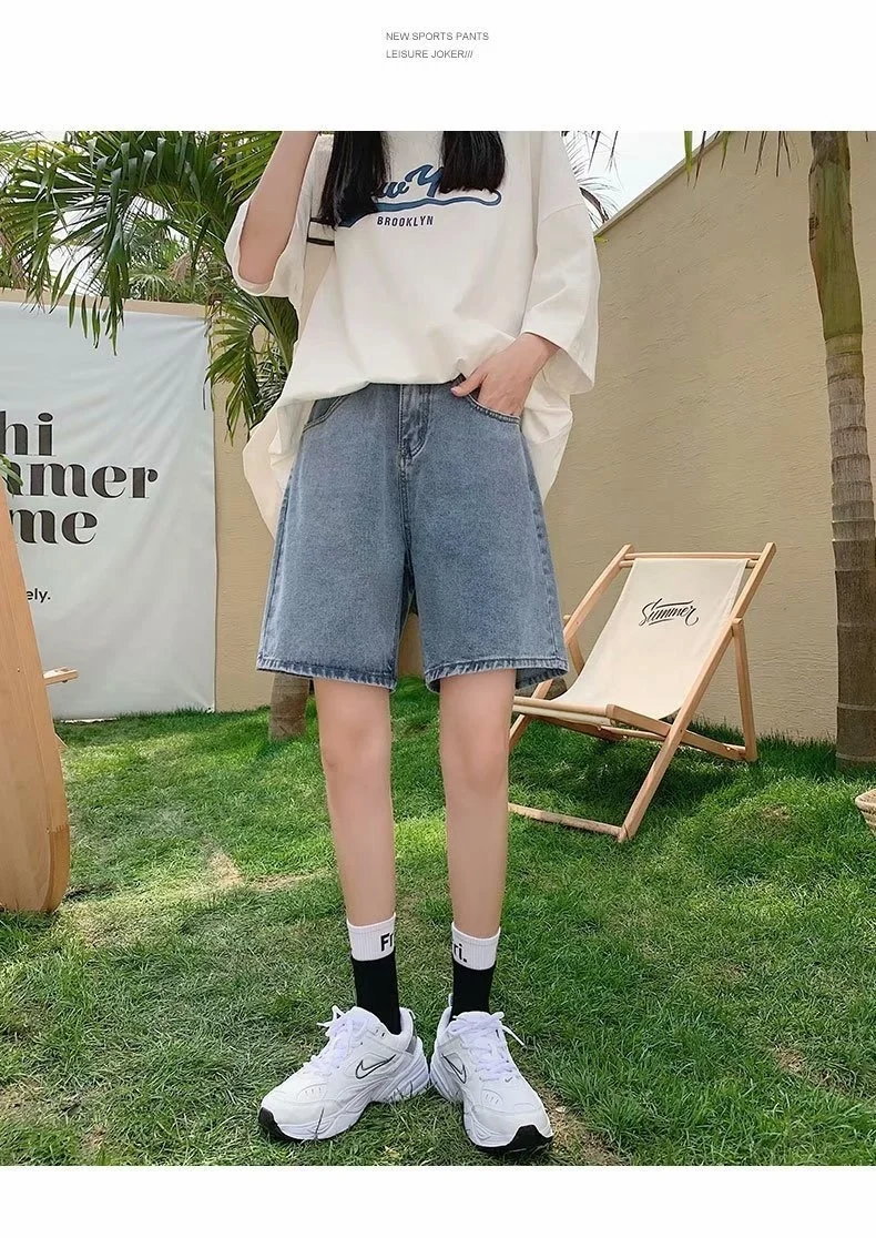 Женские джинсовые шорты Feynzz, свободные шорты с высокой талией и поясом, уличная одежда на лето