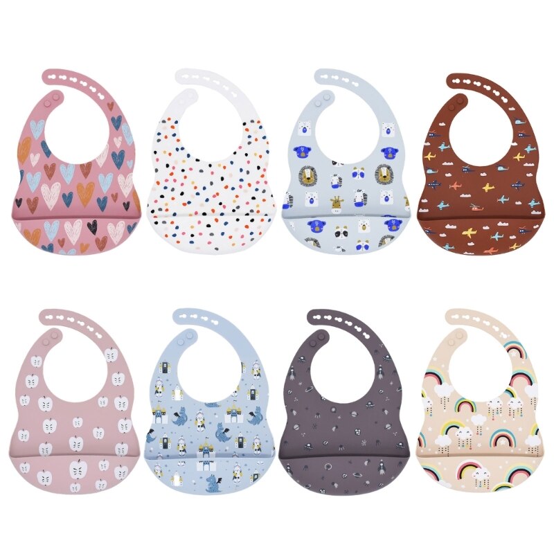 Силиконовые нагрудники для младенцев с большим и устойчивым карманом, открытые, чтобы поймать любого бродячего.