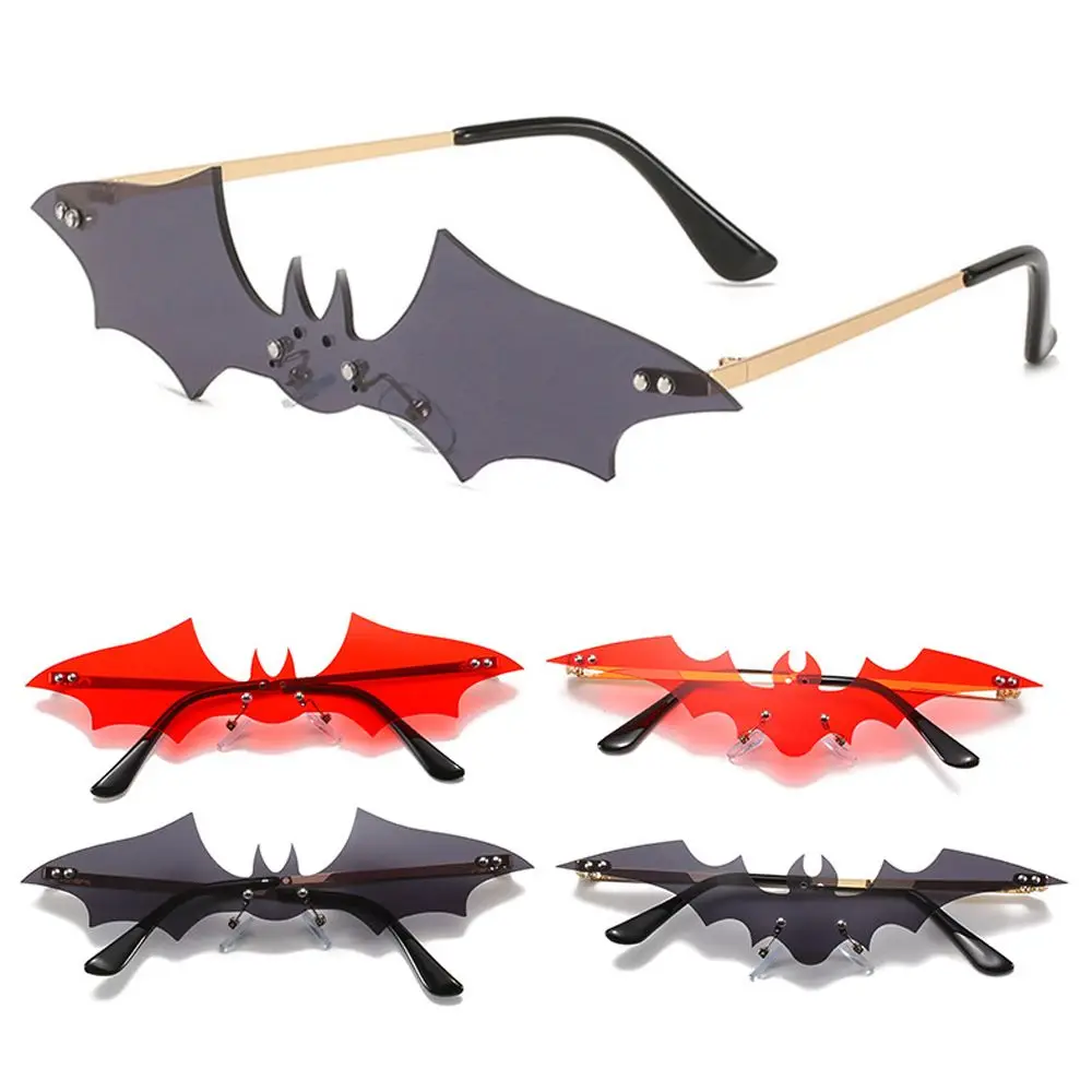 Модные очки в металлической оправе, солнцезащитные очки без оправы, тонкие солнцезащитные очки в форме летучей мыши, женские солнцезащитные очки