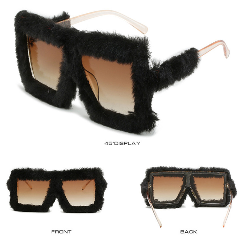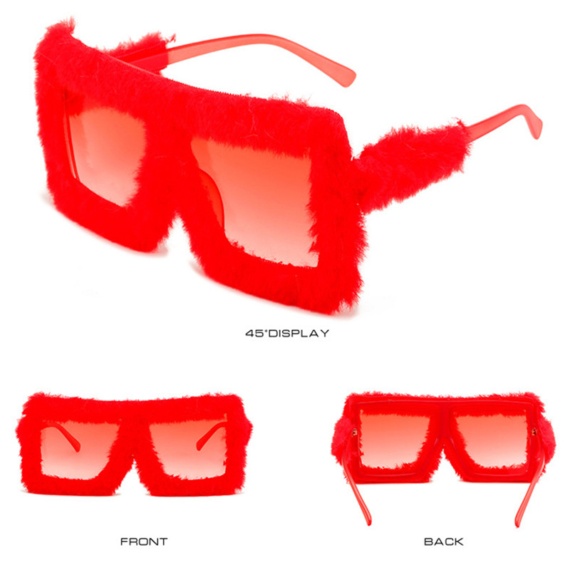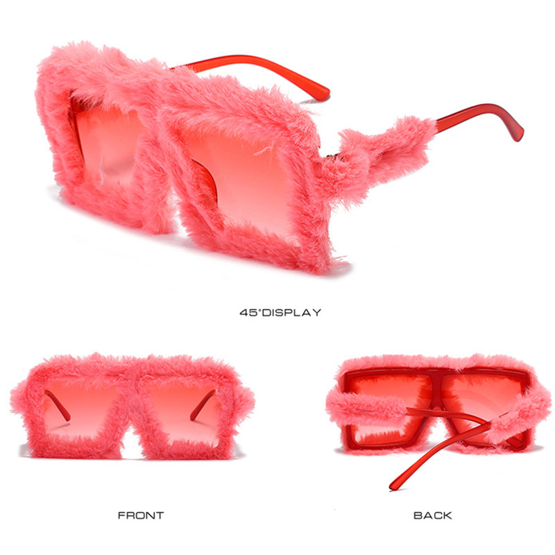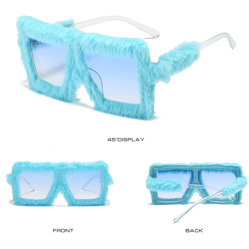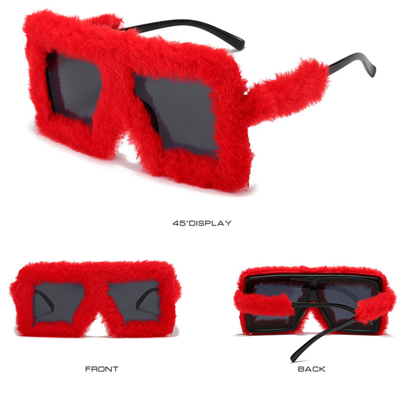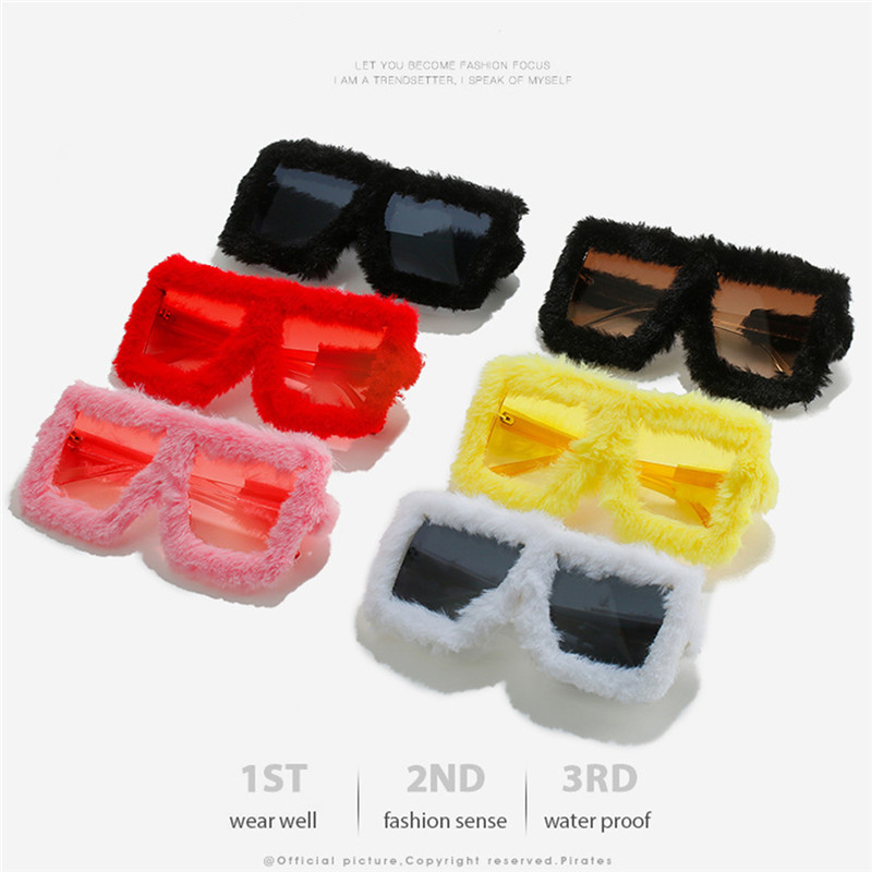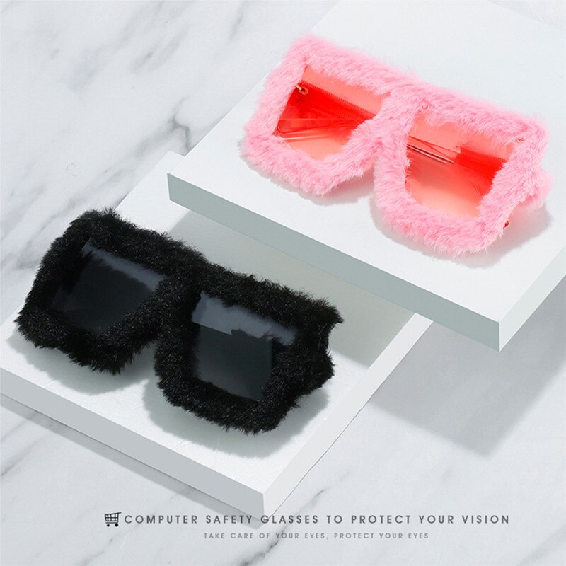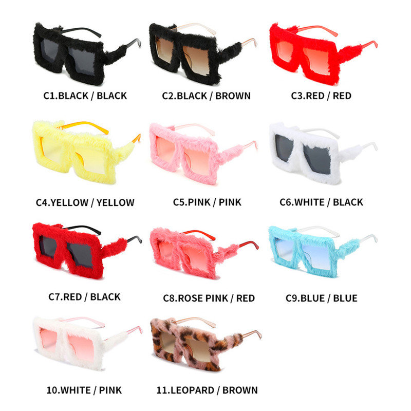 Модные плюшевые прямоугольные солнцезащитные очки UV400 11 цветов для женщин, забавные солнцезащитные очки с квадратной большой оправой, модные праздничные очки