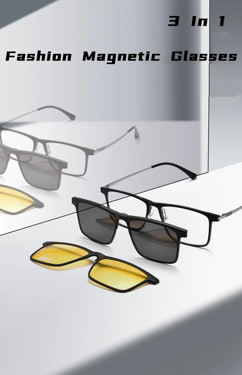 Модные поляризационные солнцезащитные очки YIMARUILI с магнитным зажимом UV400, ретро квадратные очки из чистого титана, оптические оправы для мужчин