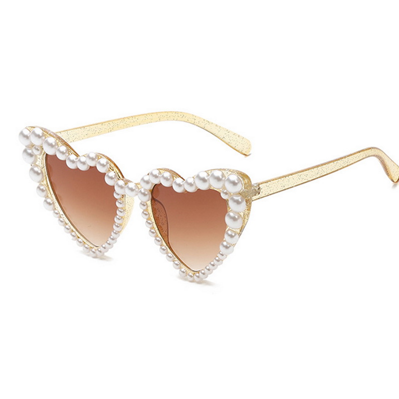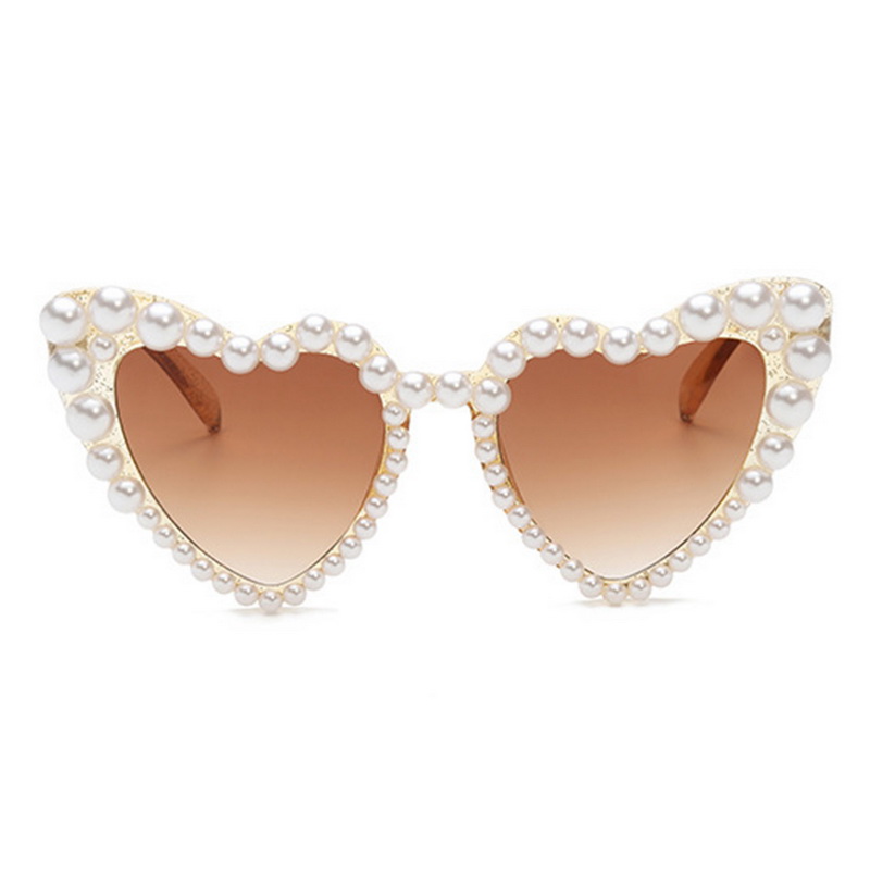 Модные Ретро солнцезащитные очки в форме сердца с жемчужной оправой UV400 женские солнцезащитные очки кошачий глаз