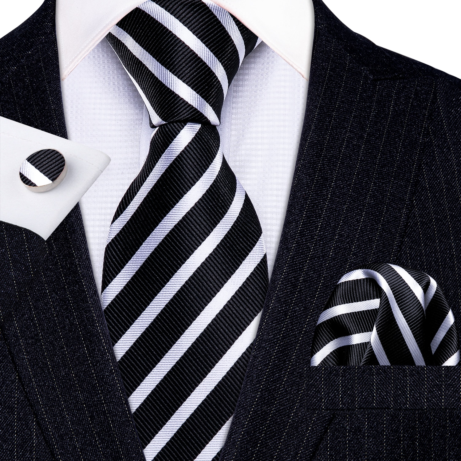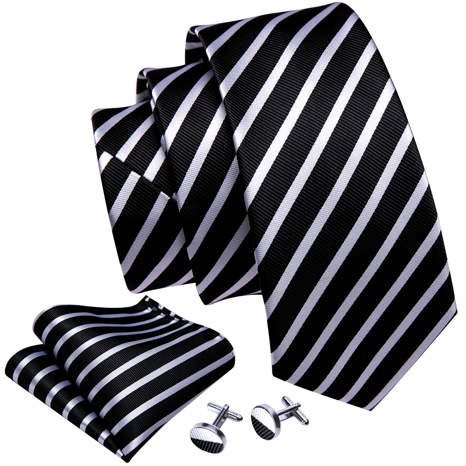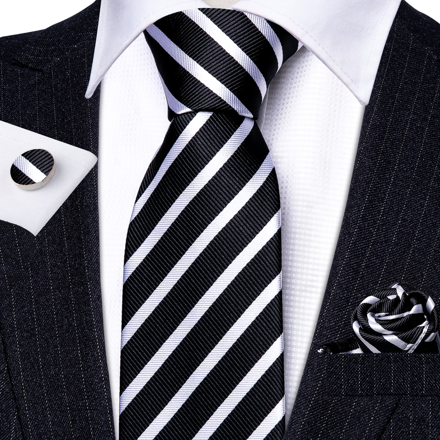 Модные Роскошные Черные Полосатые 100% шелковые галстуки подарки для мужчин Свадебный костюм Барри. Ван Галстуки Hanky наборы жениха бизнес LN-5292